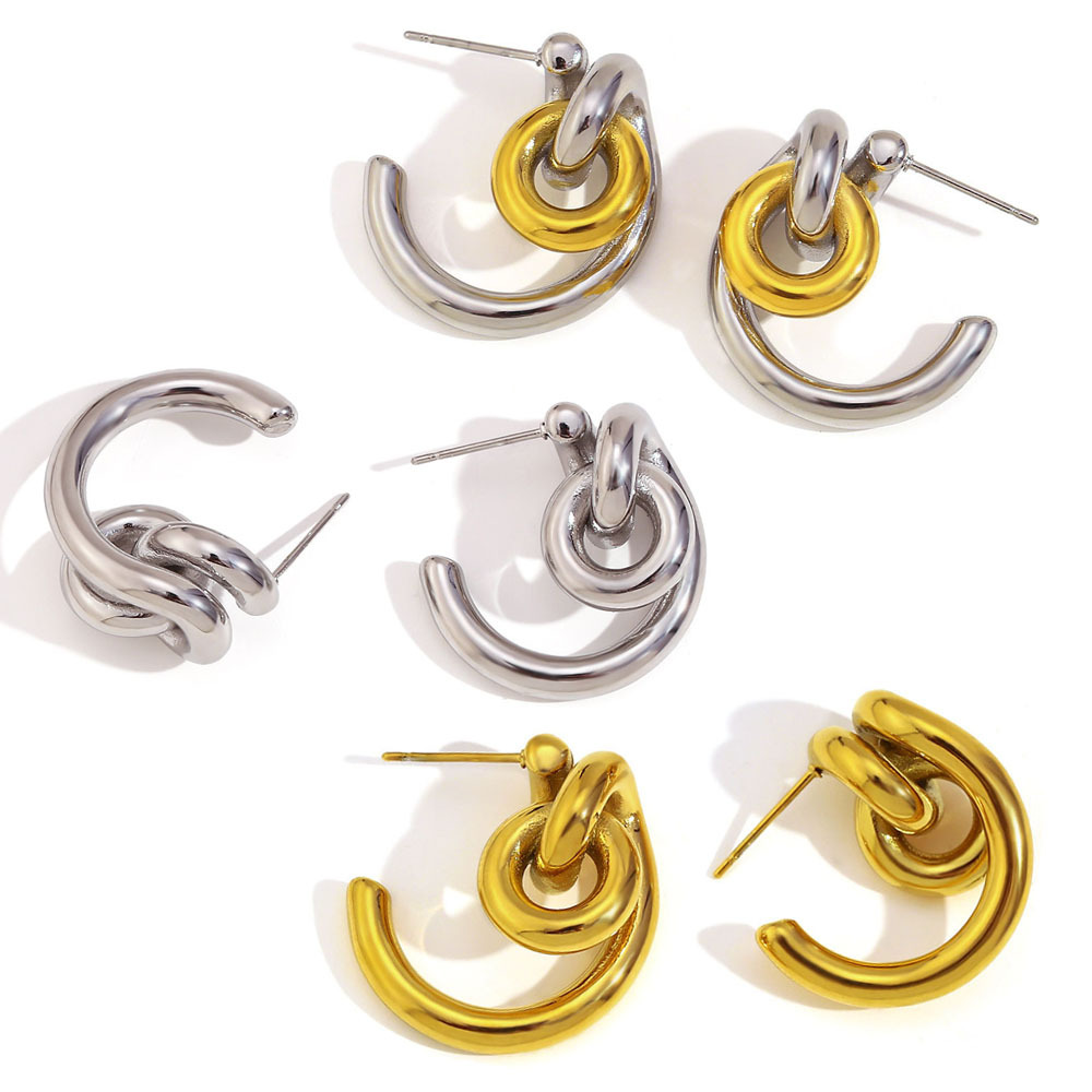 0 Review for Fashion Winding Circle Titanium Steel Ear Studs Creative Lock C- Shaped Niche Personality Female