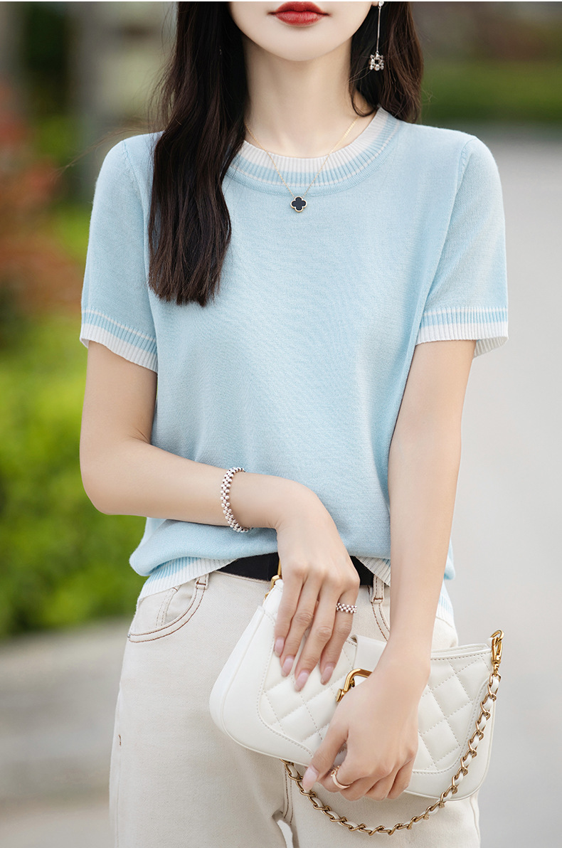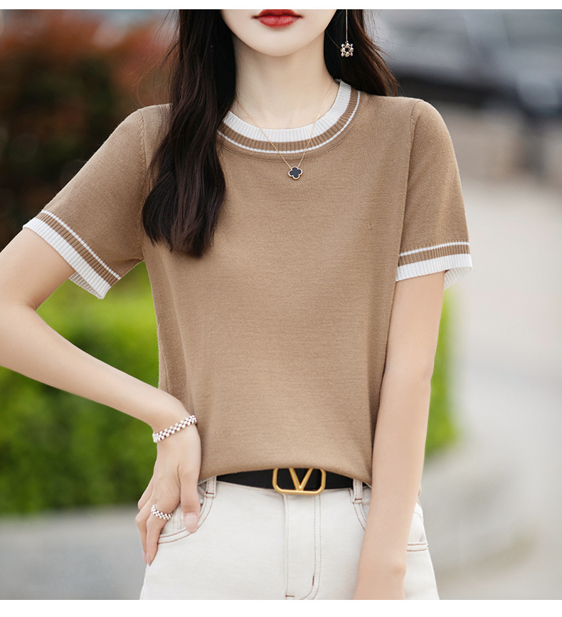0 Review for Fashion Women's Thin Color Block Basic Shirt