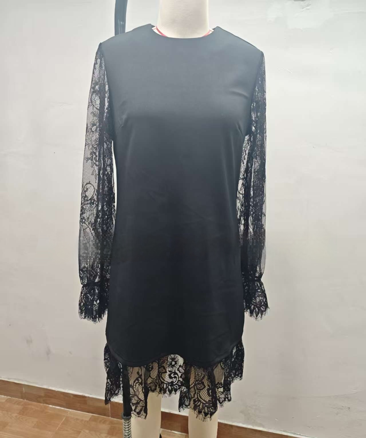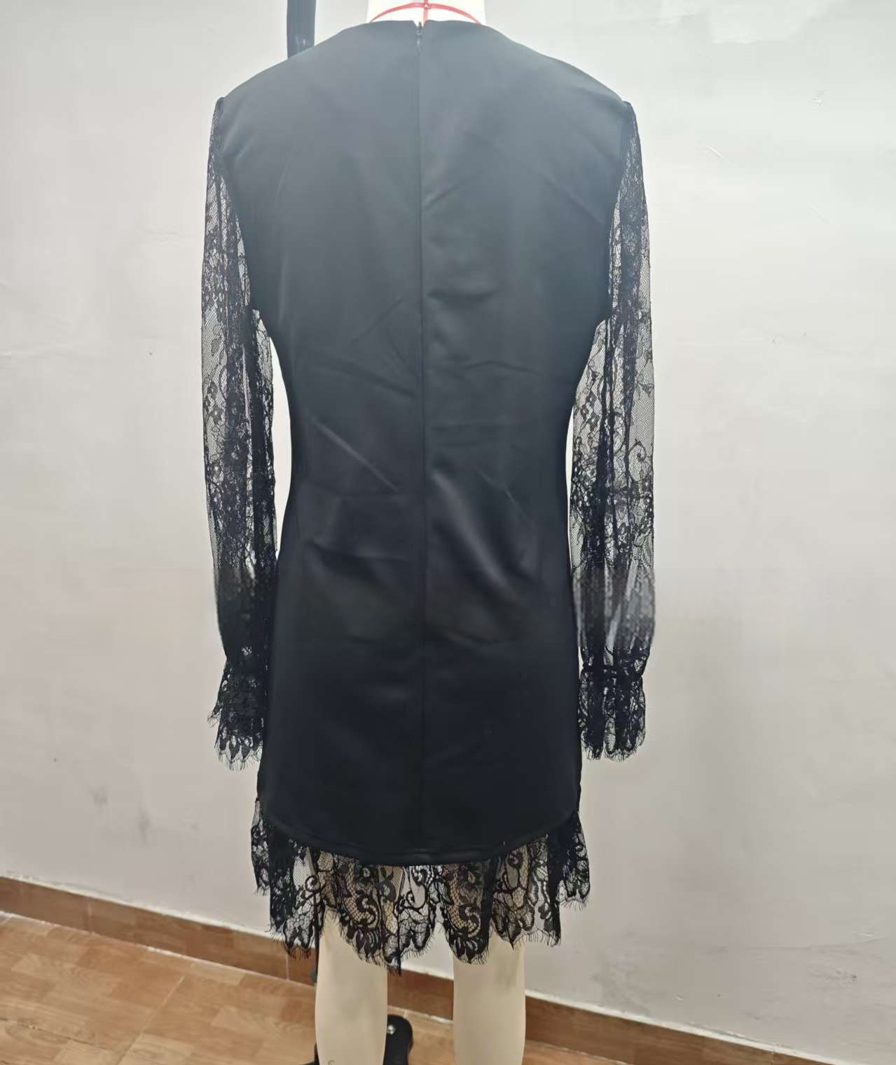 Fashionable Lace-Sleeved All-Match Slimming Frilly Long-Sleeve Dress For Women