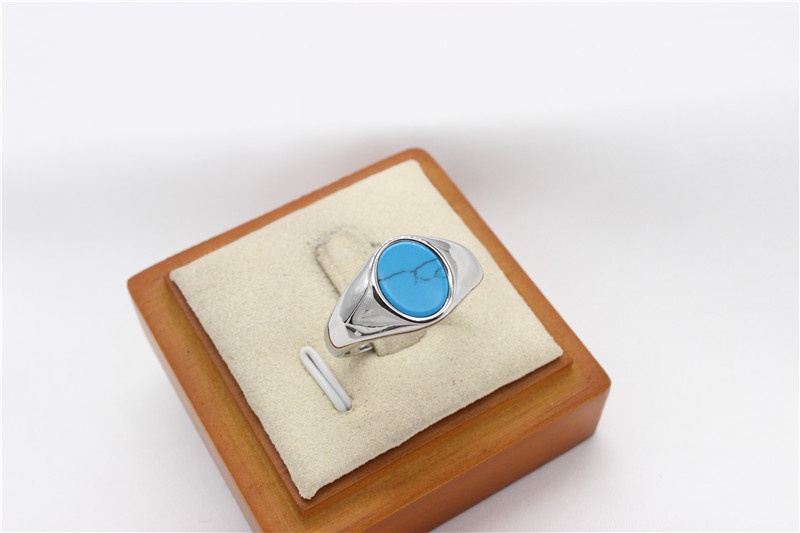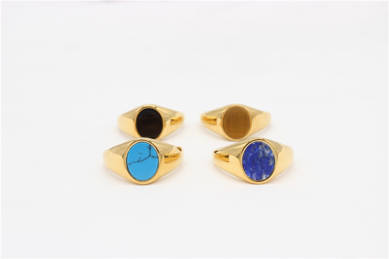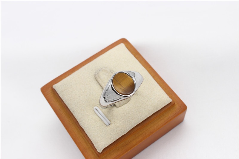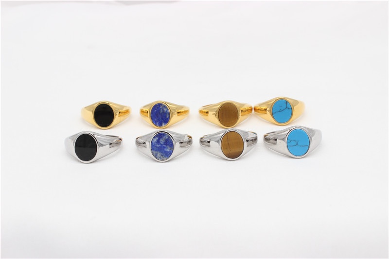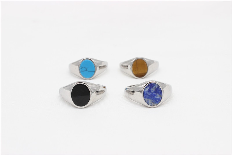 0 Review for Fashionable Minimalist Oval Gemstone Ring In Cool-toned Titanium Steel