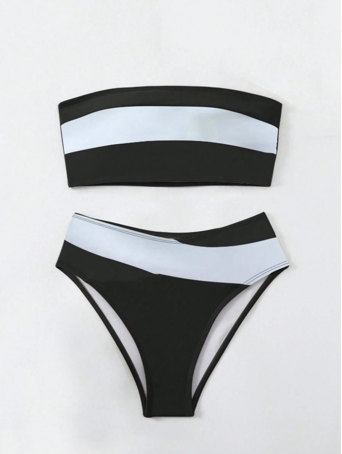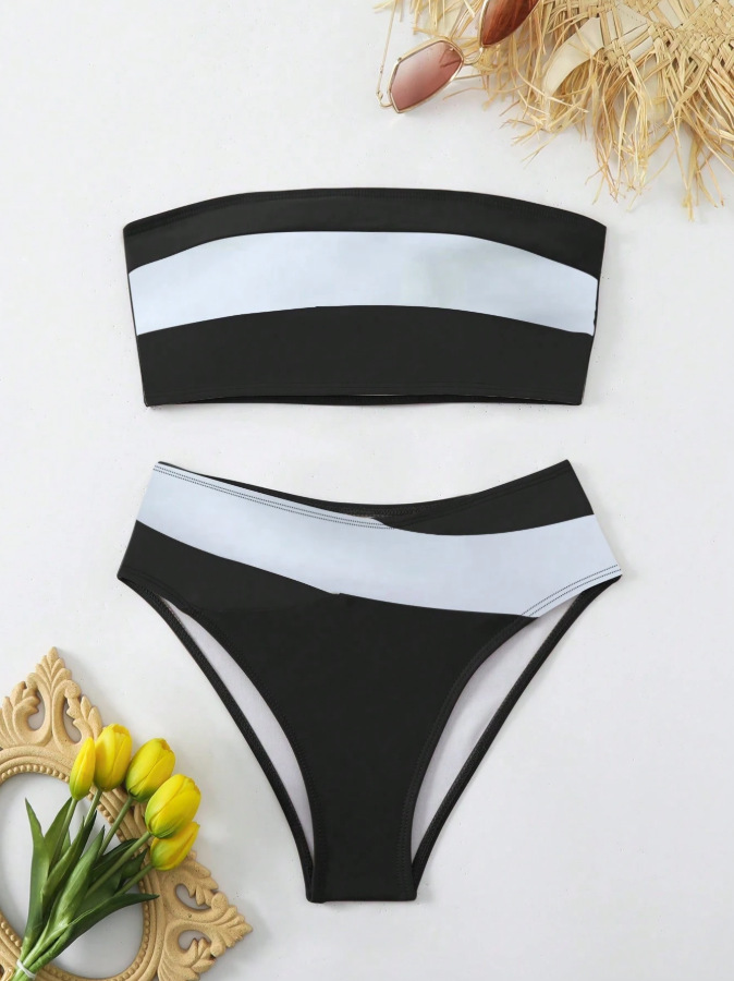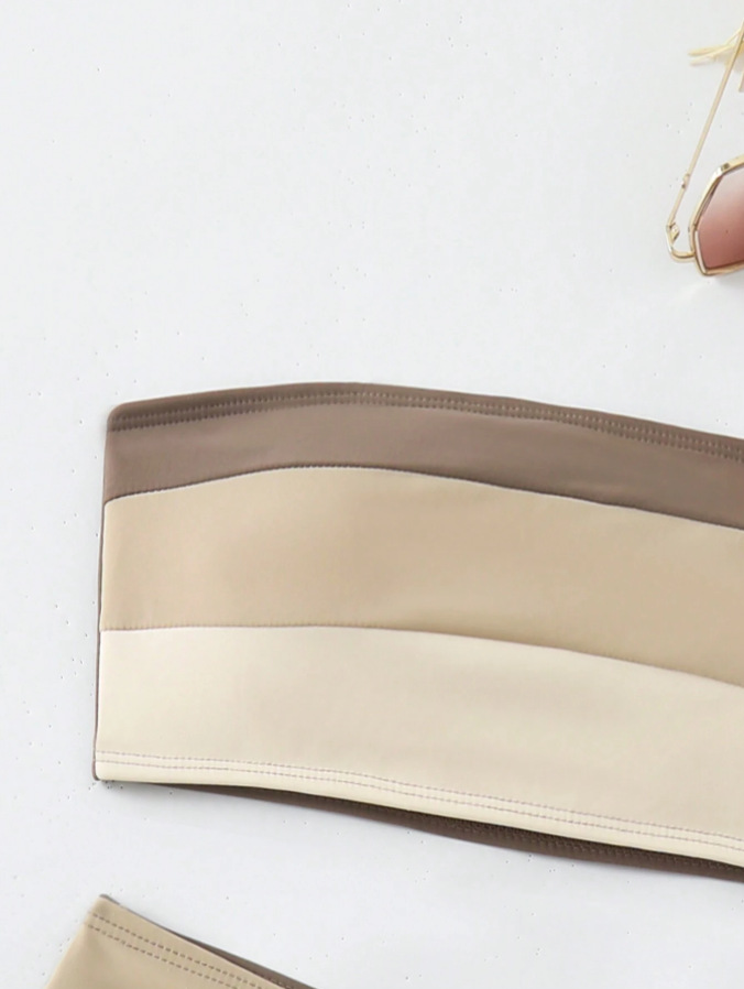 0 Review for Fashionable Sexy Off-shoulder Color-block Two-piece Bikini