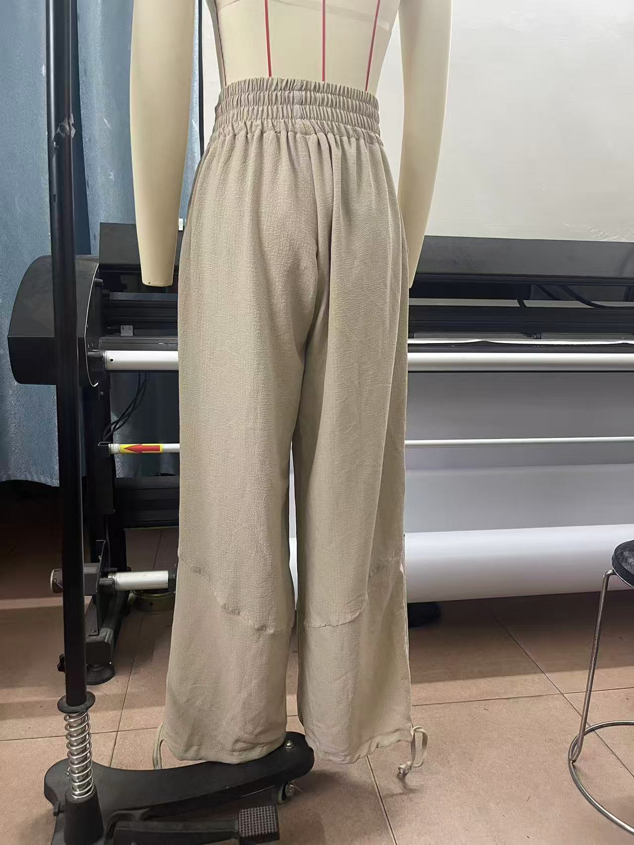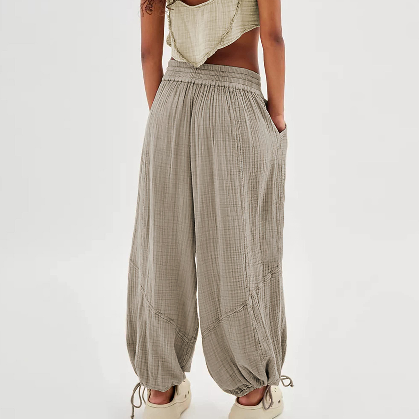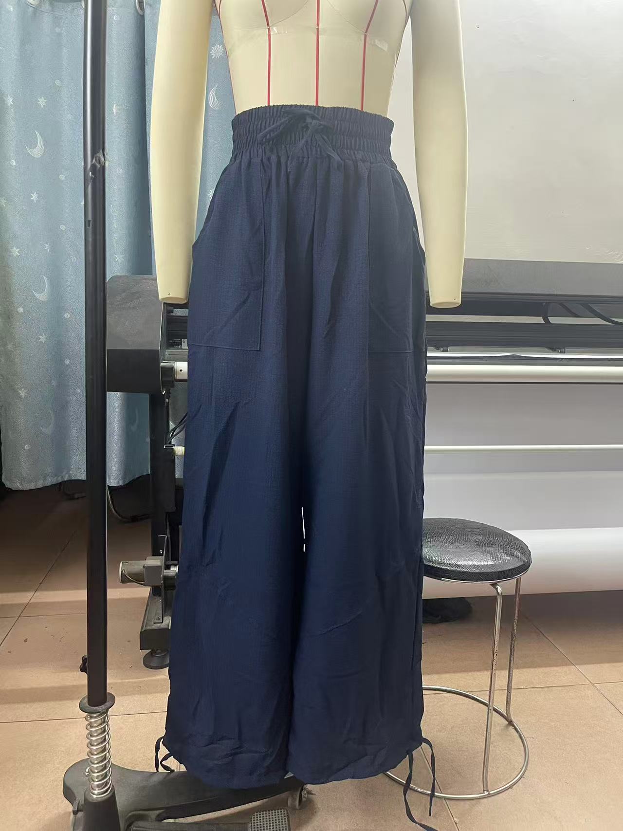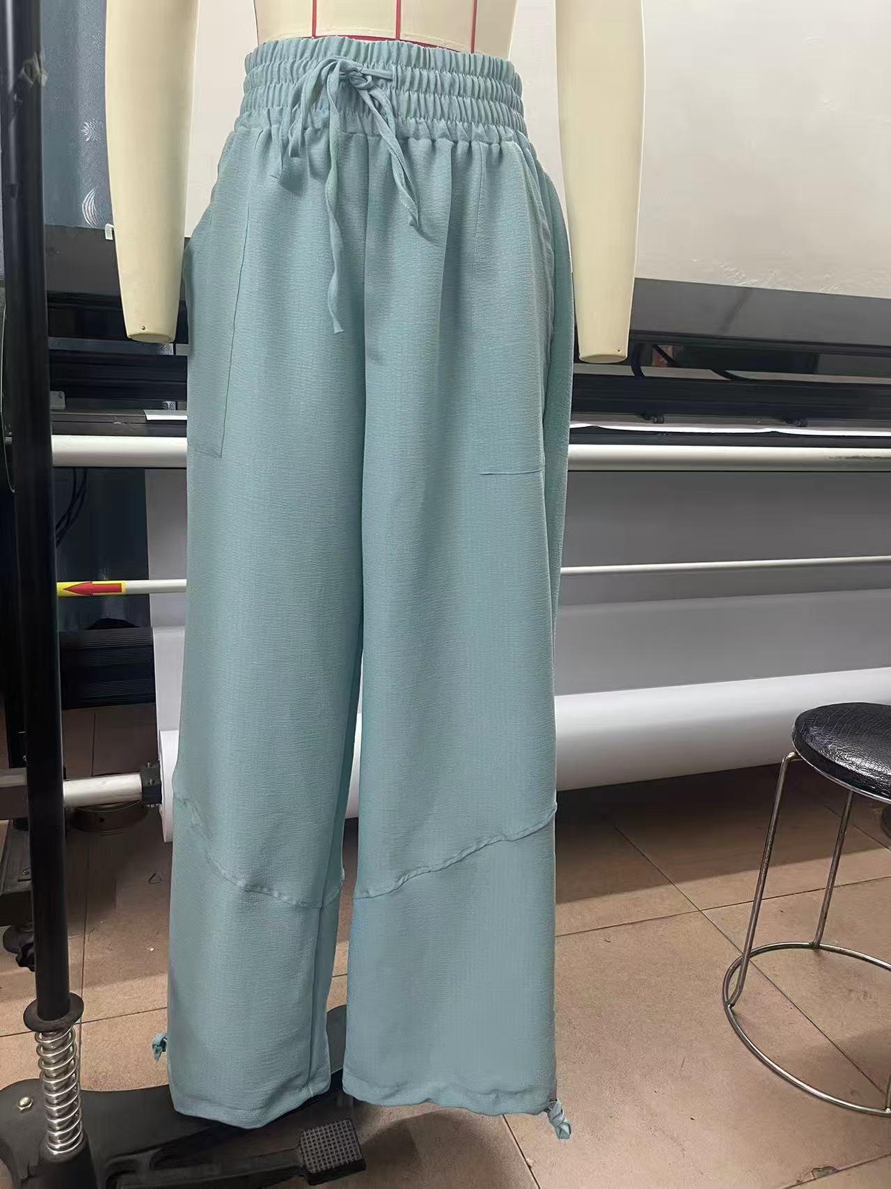 Fashionable Solid-Colored Wide-Leg Pants With Ties And Pockets Long Pants