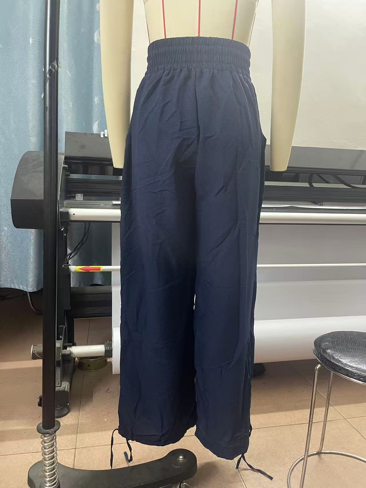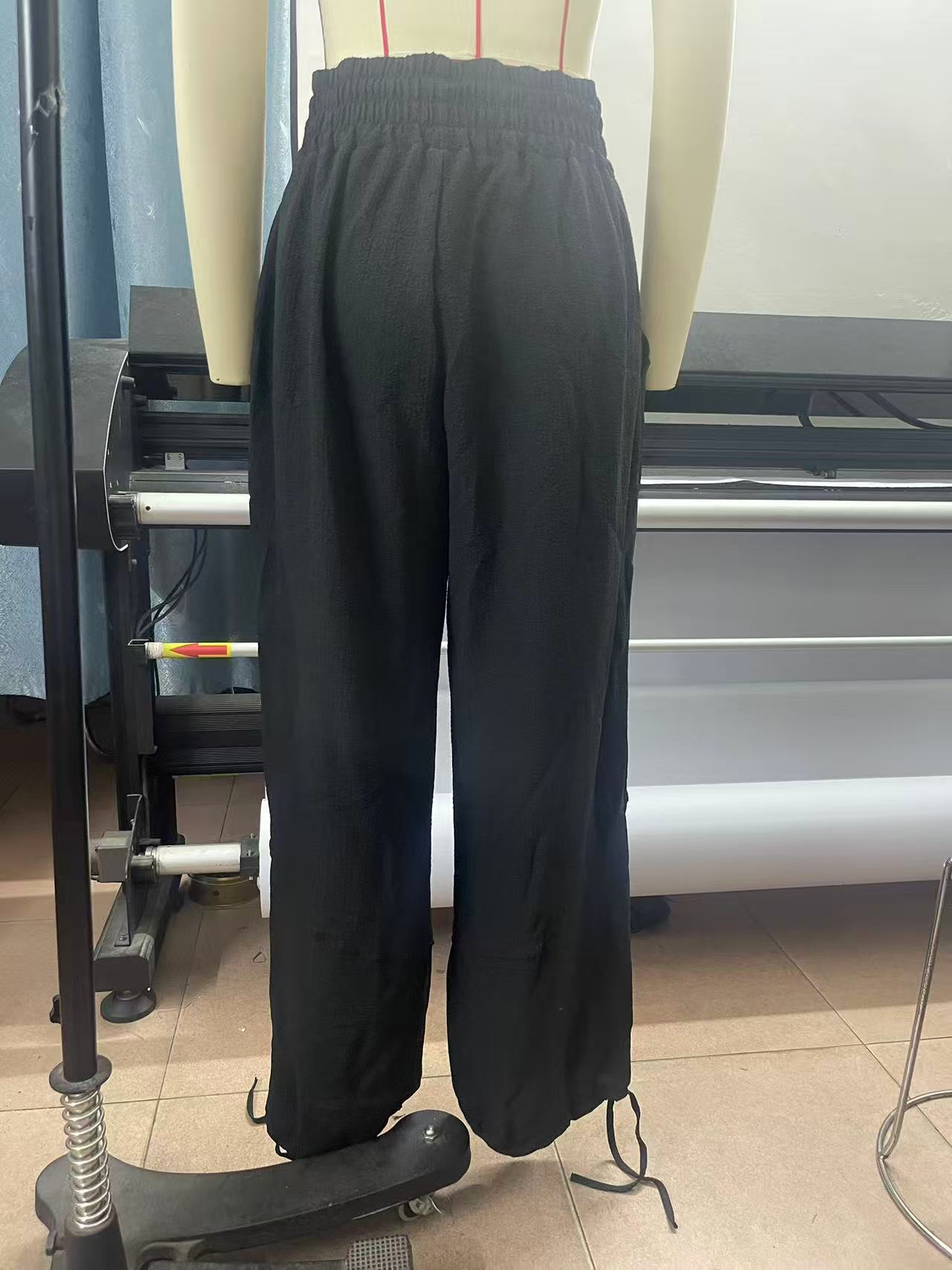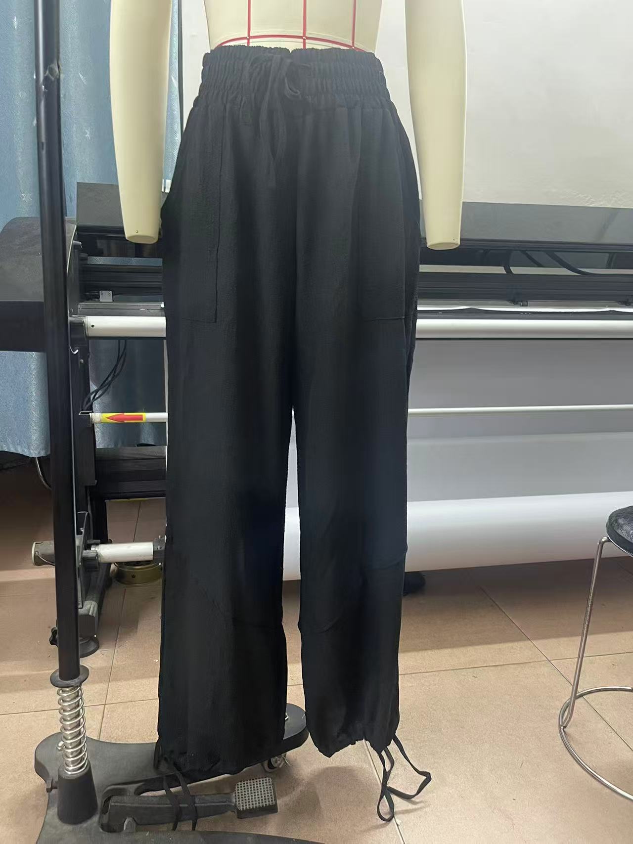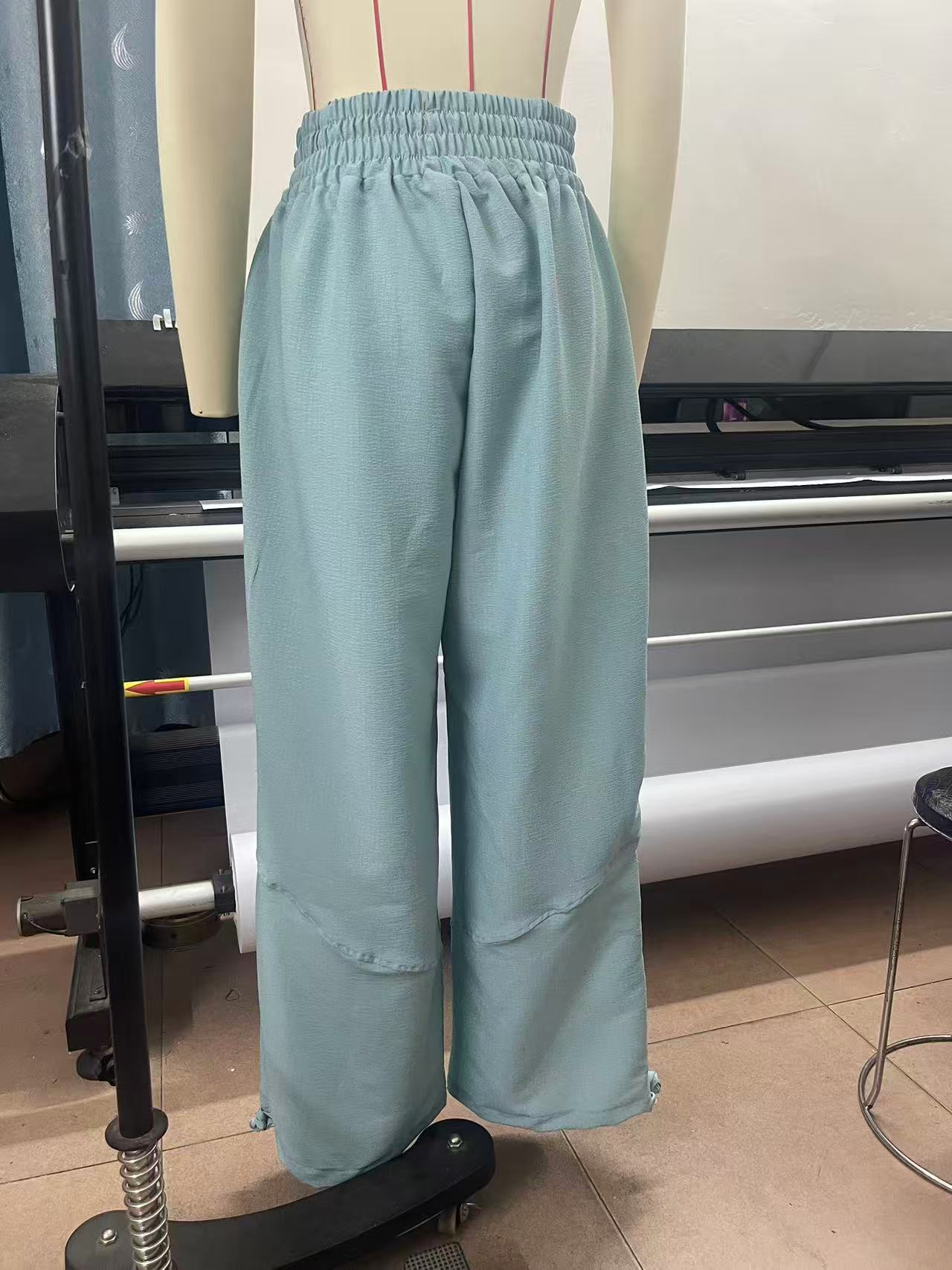 Fashionable Solid-Colored Wide-Leg Pants With Ties And Pockets Long Pants