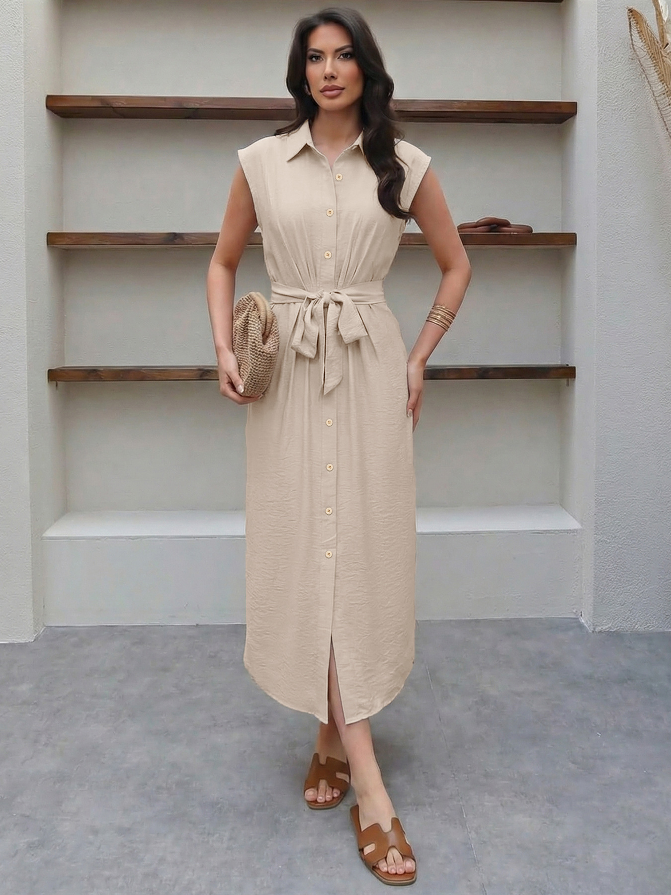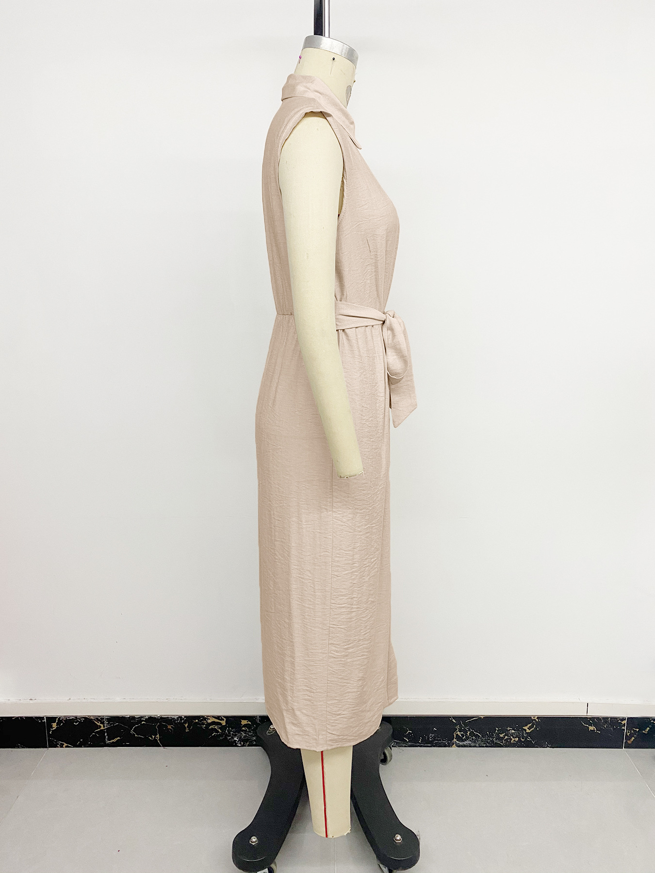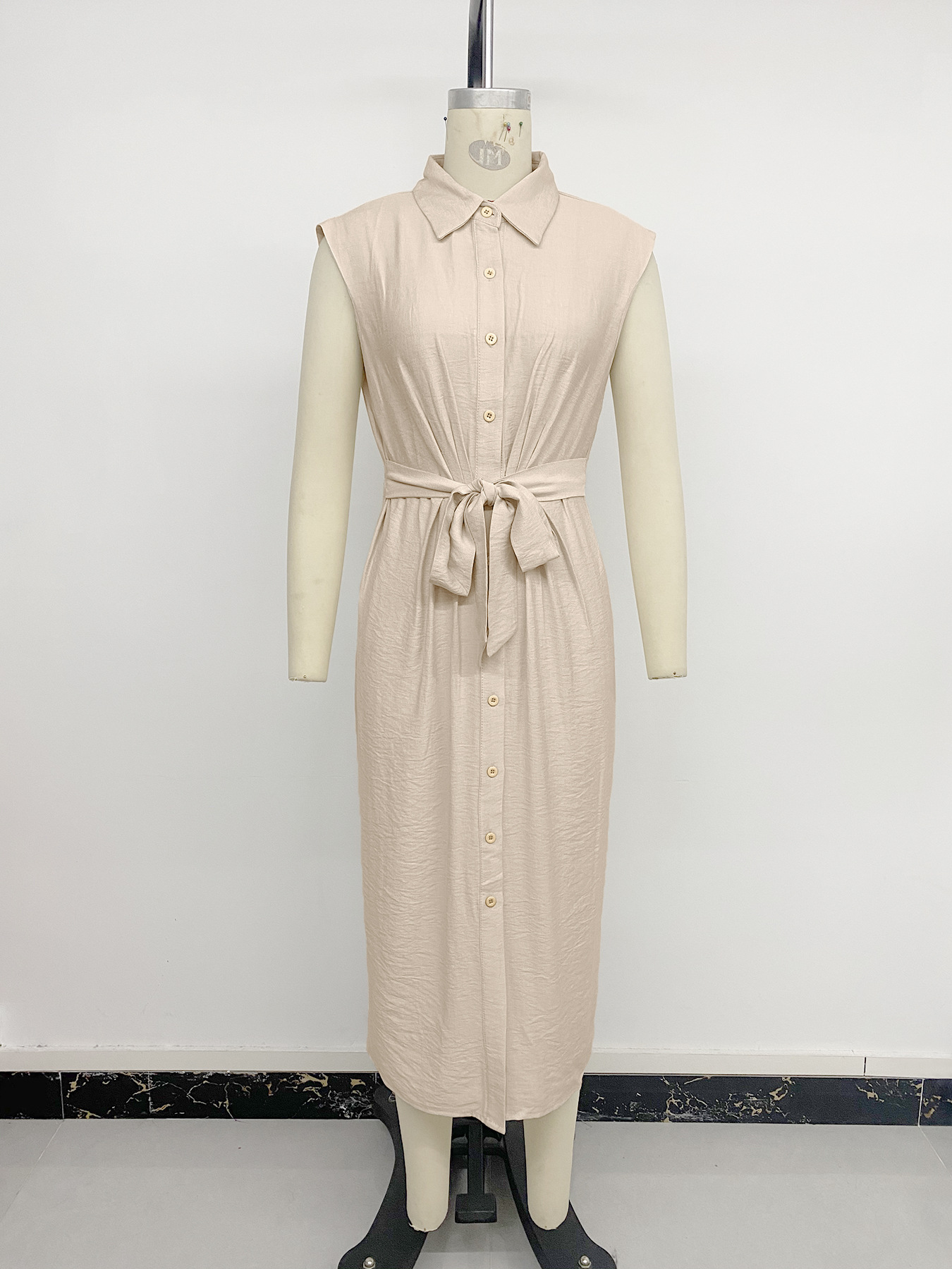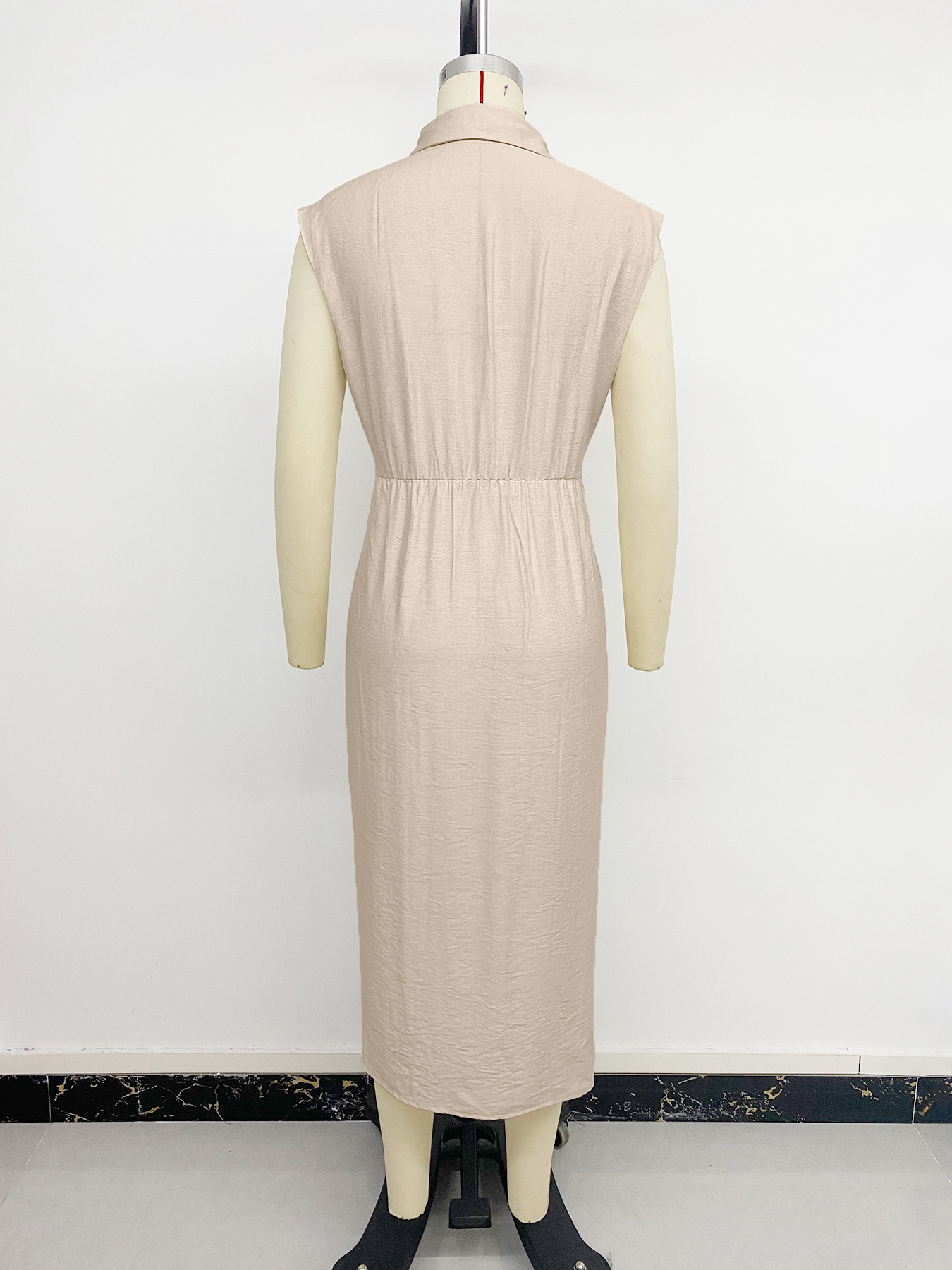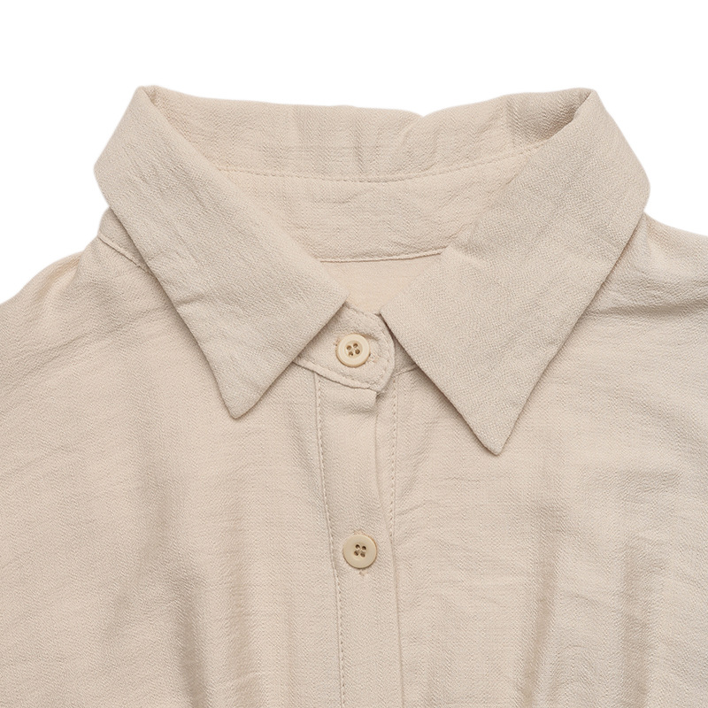 0 Review for Faux Solid-color Shirt-collar Cinched-waist Dress