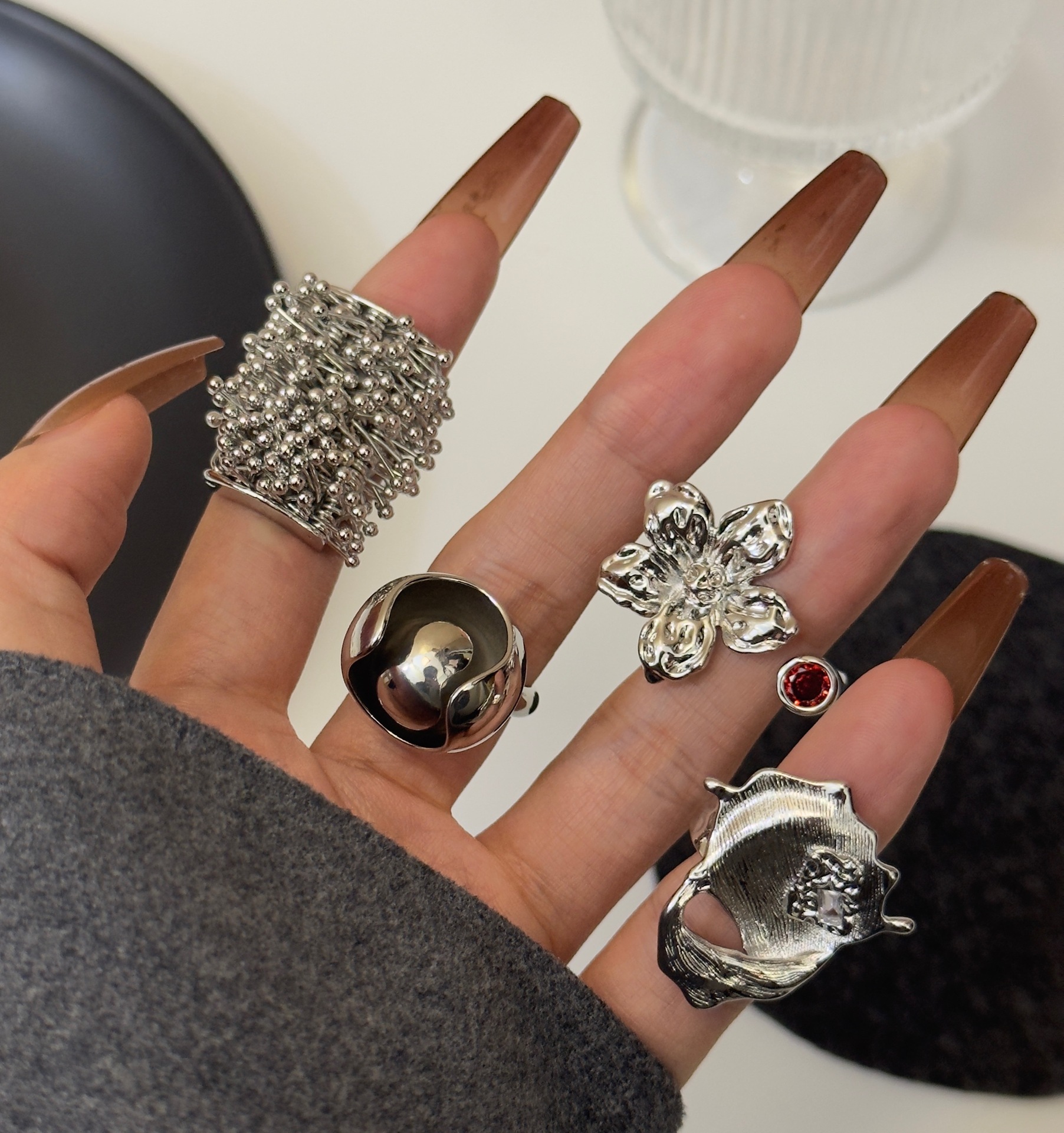 0 Review for Fireworks Retro Gold-plated Exaggerated And Personalized Heavy Industry Mixed Ring