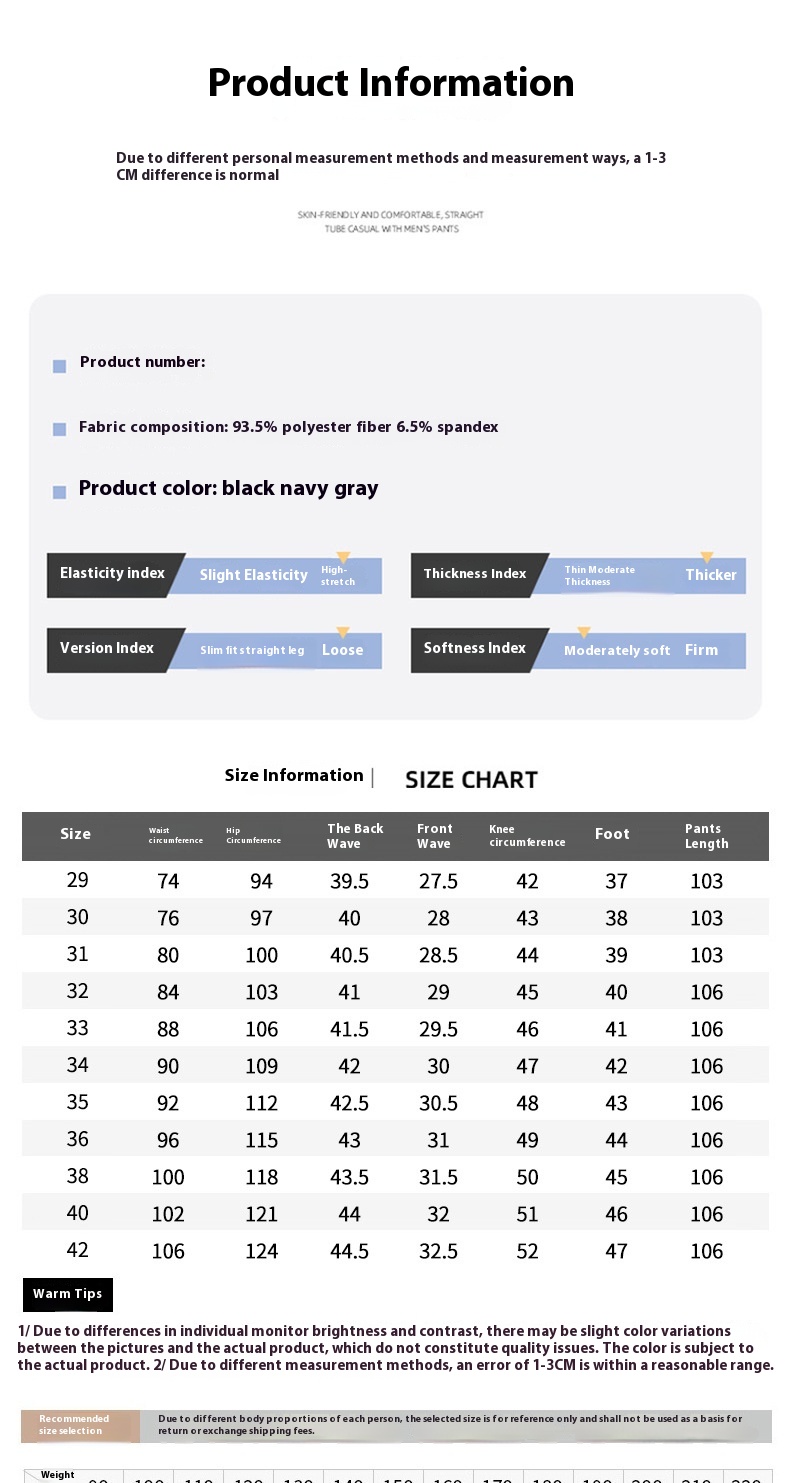 Fleece-lined Men's Trousers Anti-wrinkle Non-ironing Draping Effect Straight
