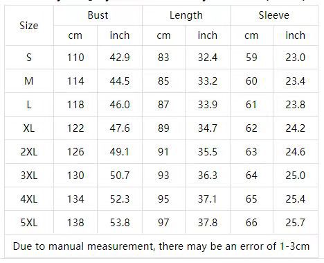 Sizes: S, M, L, XL, XXL, XXXL, XXXXL, 5XL