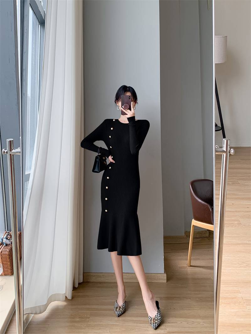 French Style Temperament Slim Fit Slimming High Waist Fishtail Sheath Dress Women