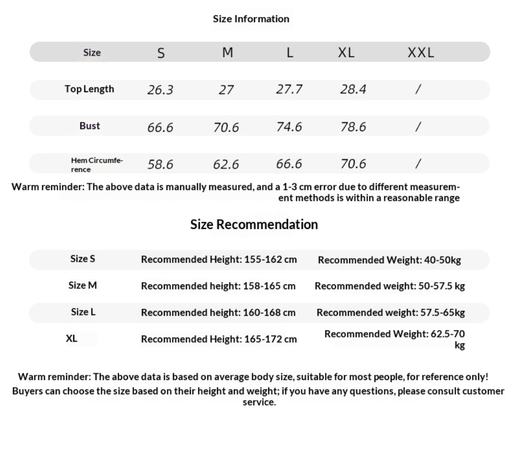 1. Asian sizes are 1 to 2 sizes smaller than European and American people. Choose the larger size if your size between two sizes. Please allow 2-3cm differences due to manual measurement. 2. Please check the size chart carefully before you buy the item, if you don't know how to choose size, please contact our customer service. 3.As you know, the different computers display colors differently, the color of the actual item may vary slightly from the following images.