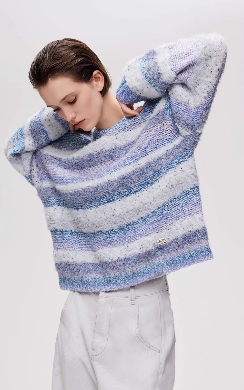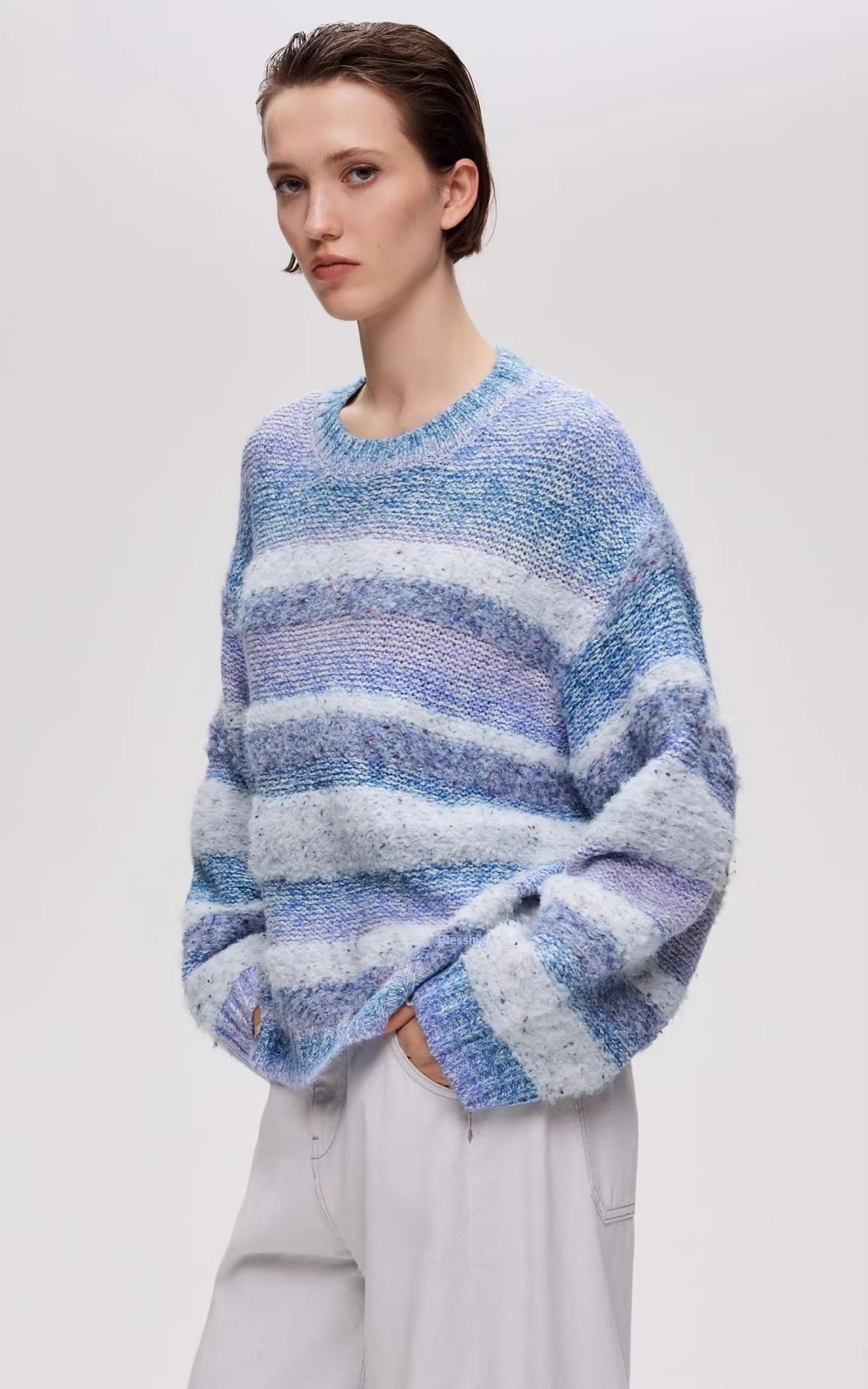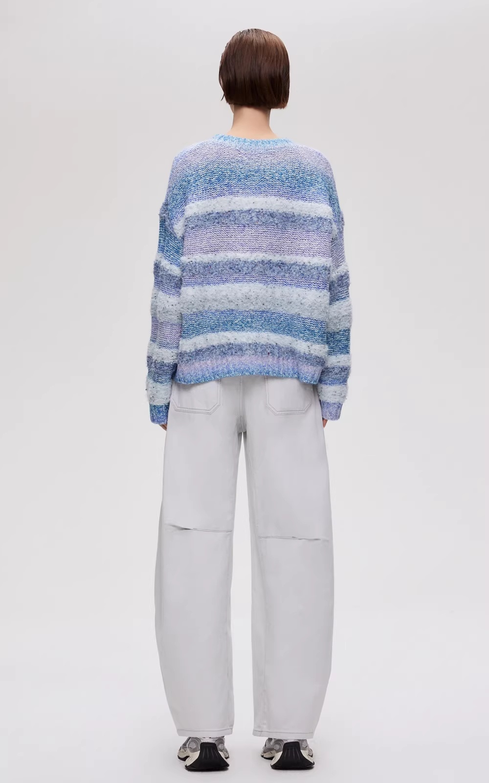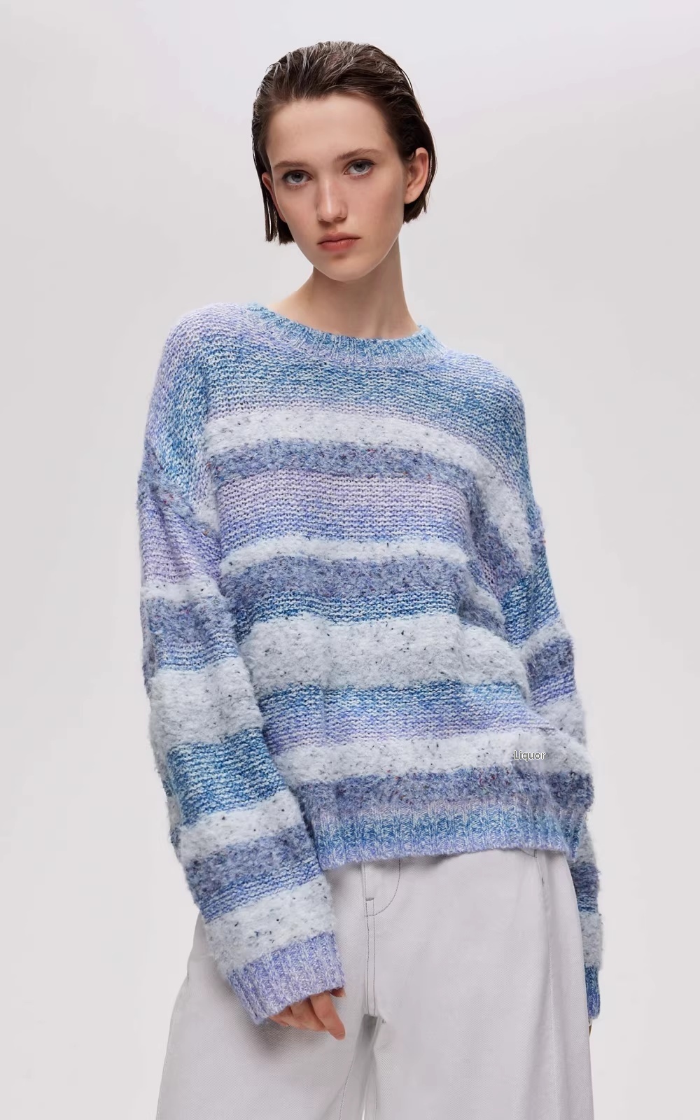 Gradient Striped Round Neck Loose-fitting Drop Shoulder Knit Sweater