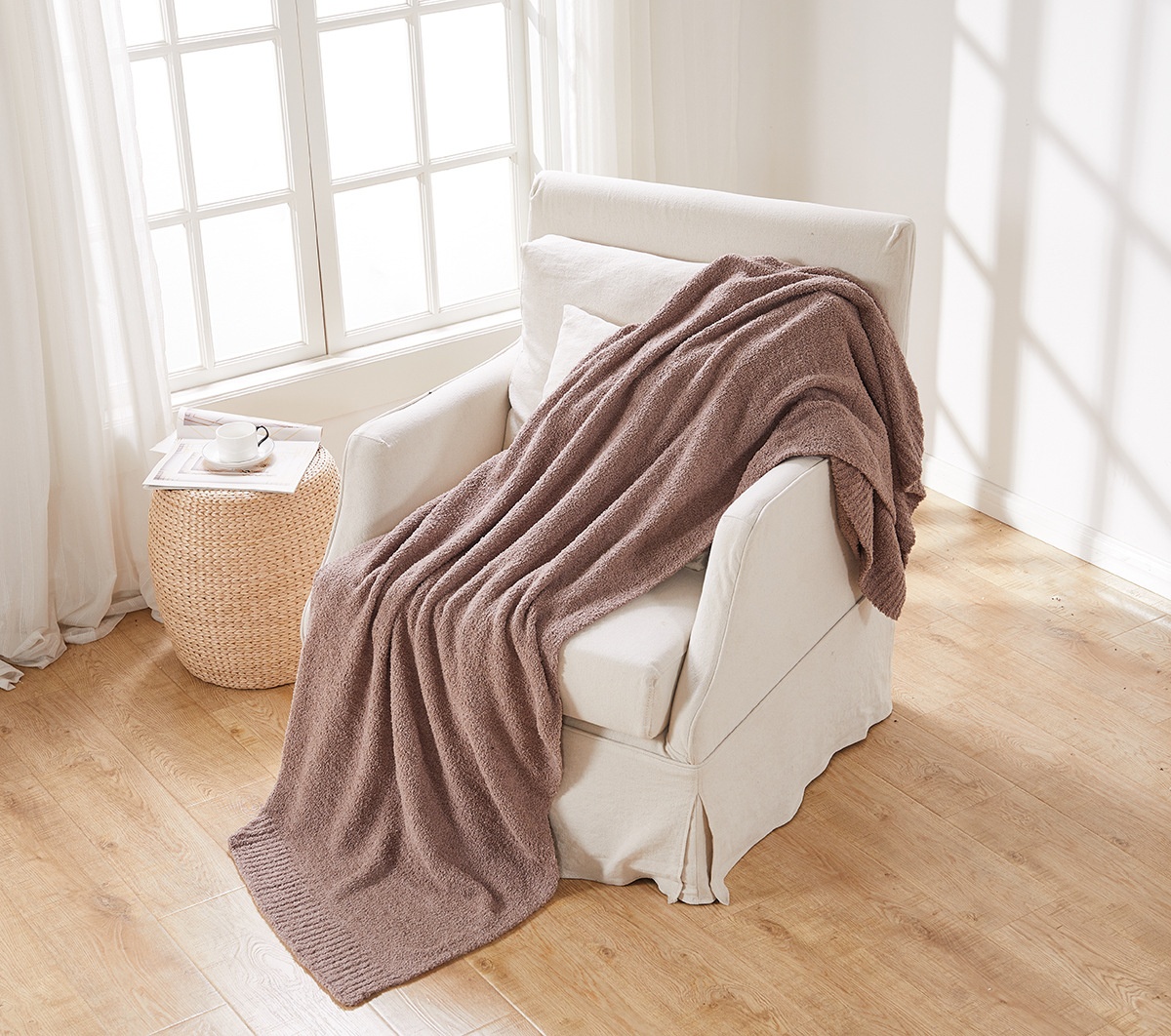 0 Review for Half Velvet Sofa Knitted Jacquard Solid Color Furniture Blanket