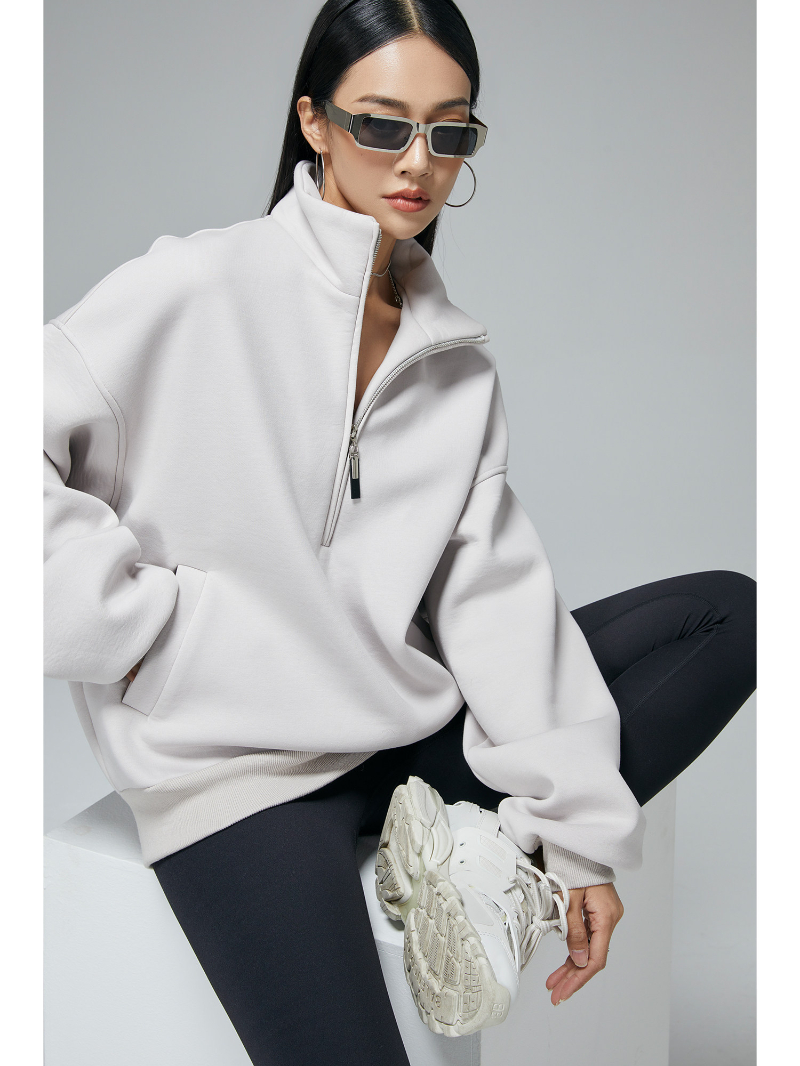 Half-zip Relaxed-fit Sweatshirt With A Stand-up Collar For Spring And Fall