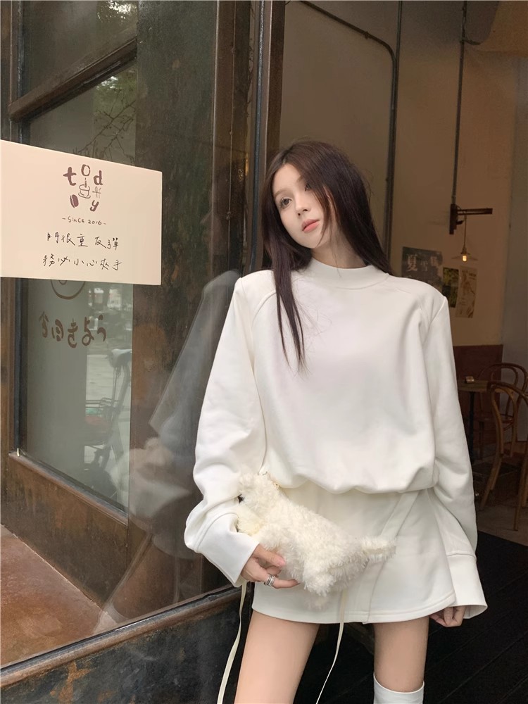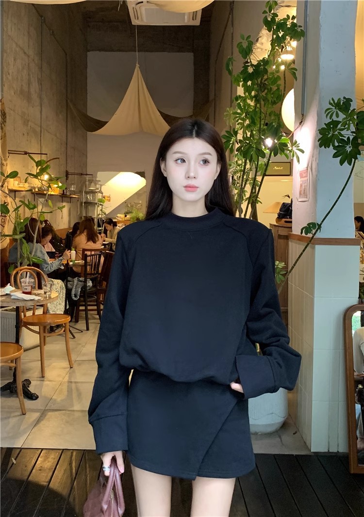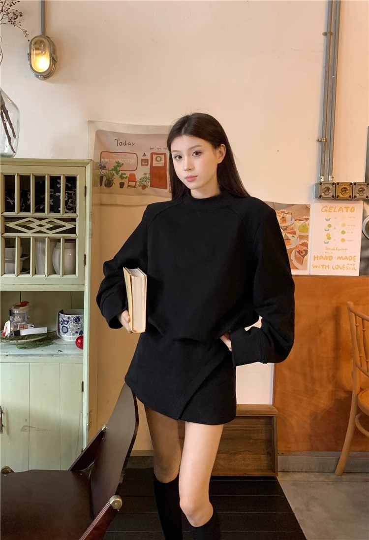0 Review for Harajuku Style Fleece Lined Sweater And Skirt Set For Women