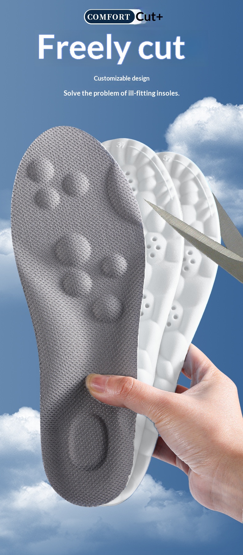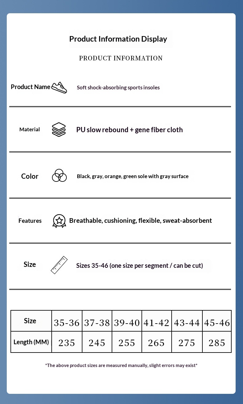 High-elasticity, Shock-absorbing, Sweat-wicking, Deodorizing Arch-support Insoles