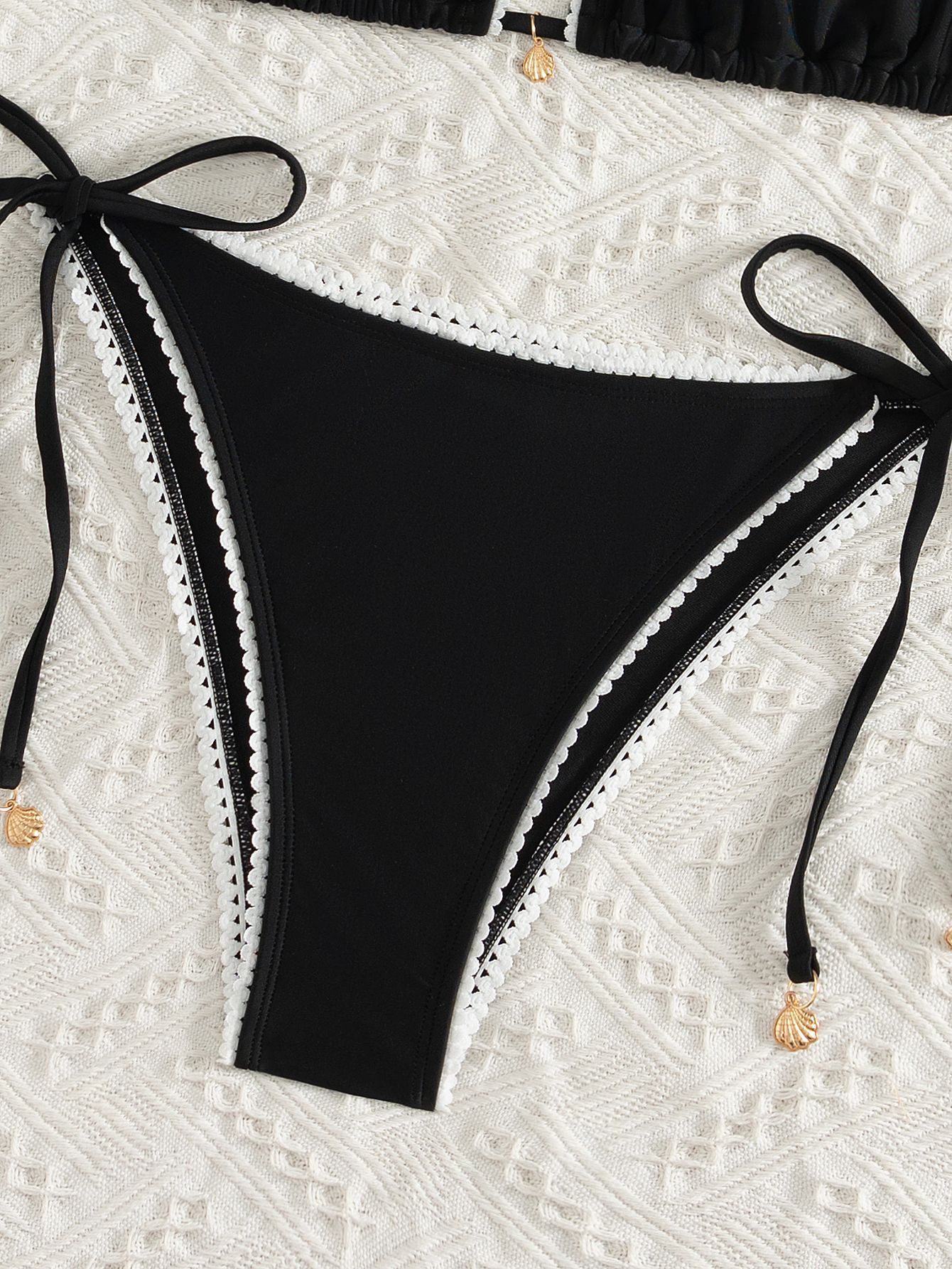 0 Review for High-end Bikini Swimsuit Set With Delicate Floral Trim