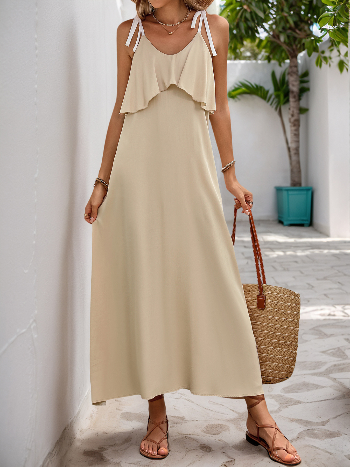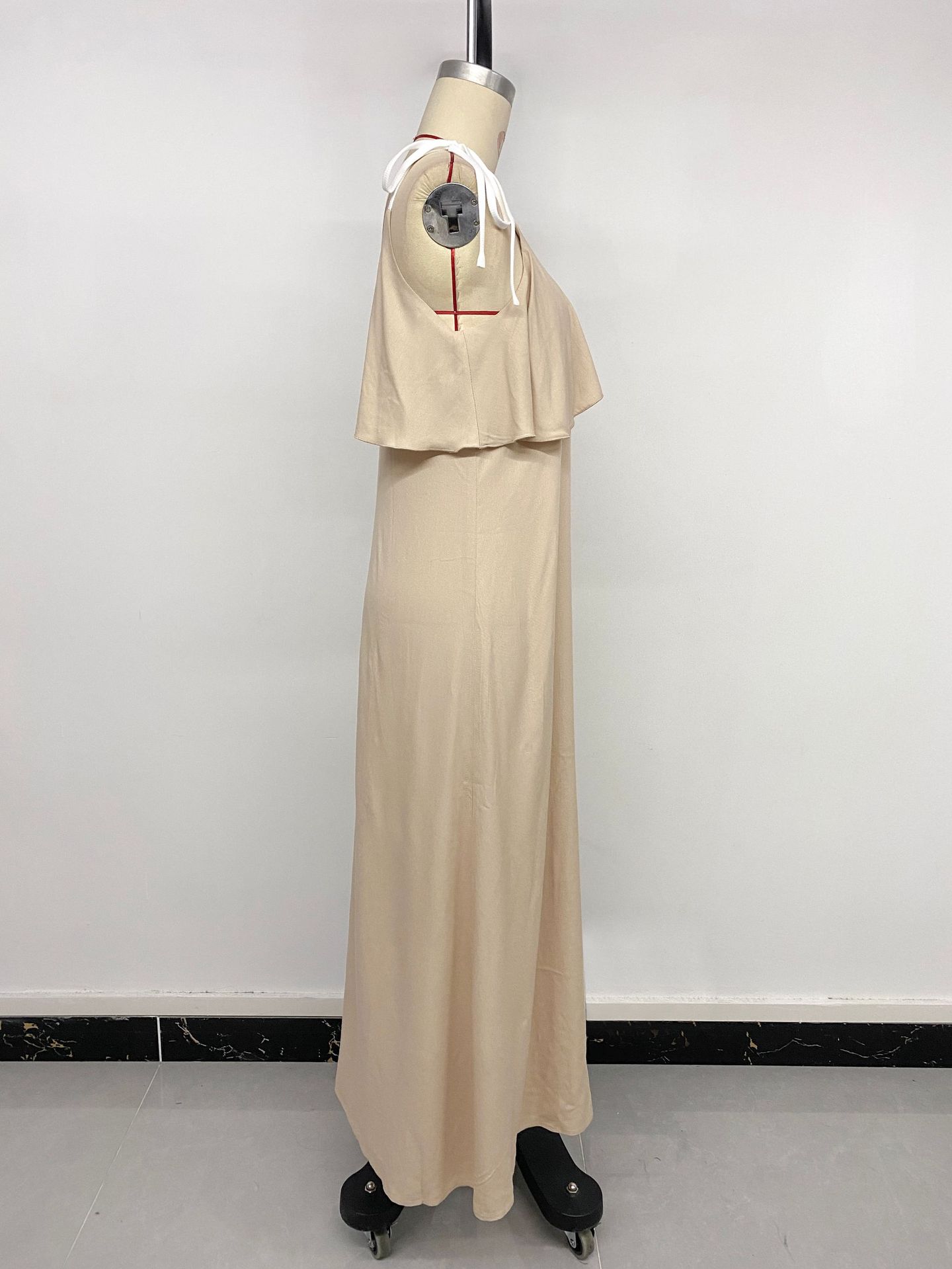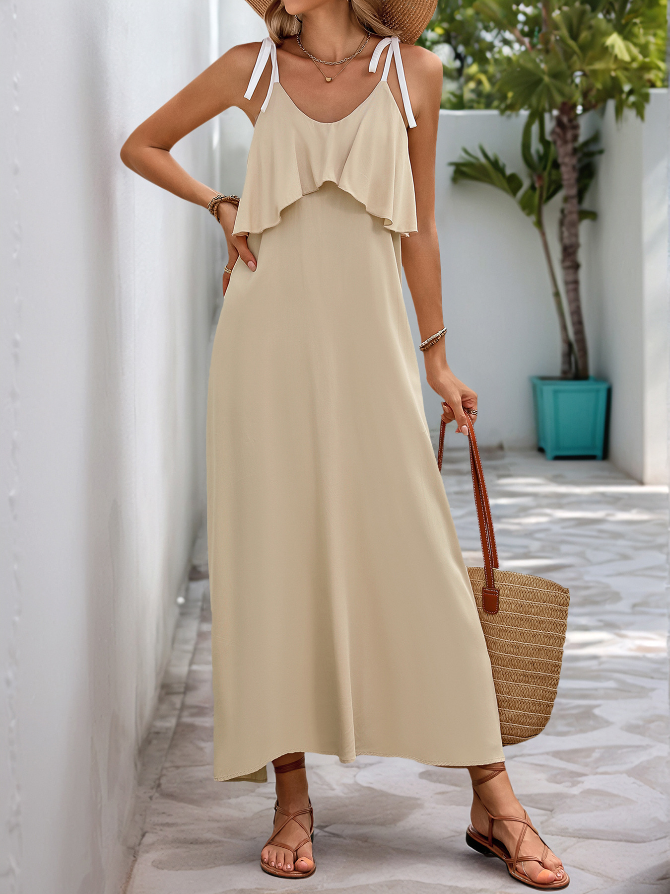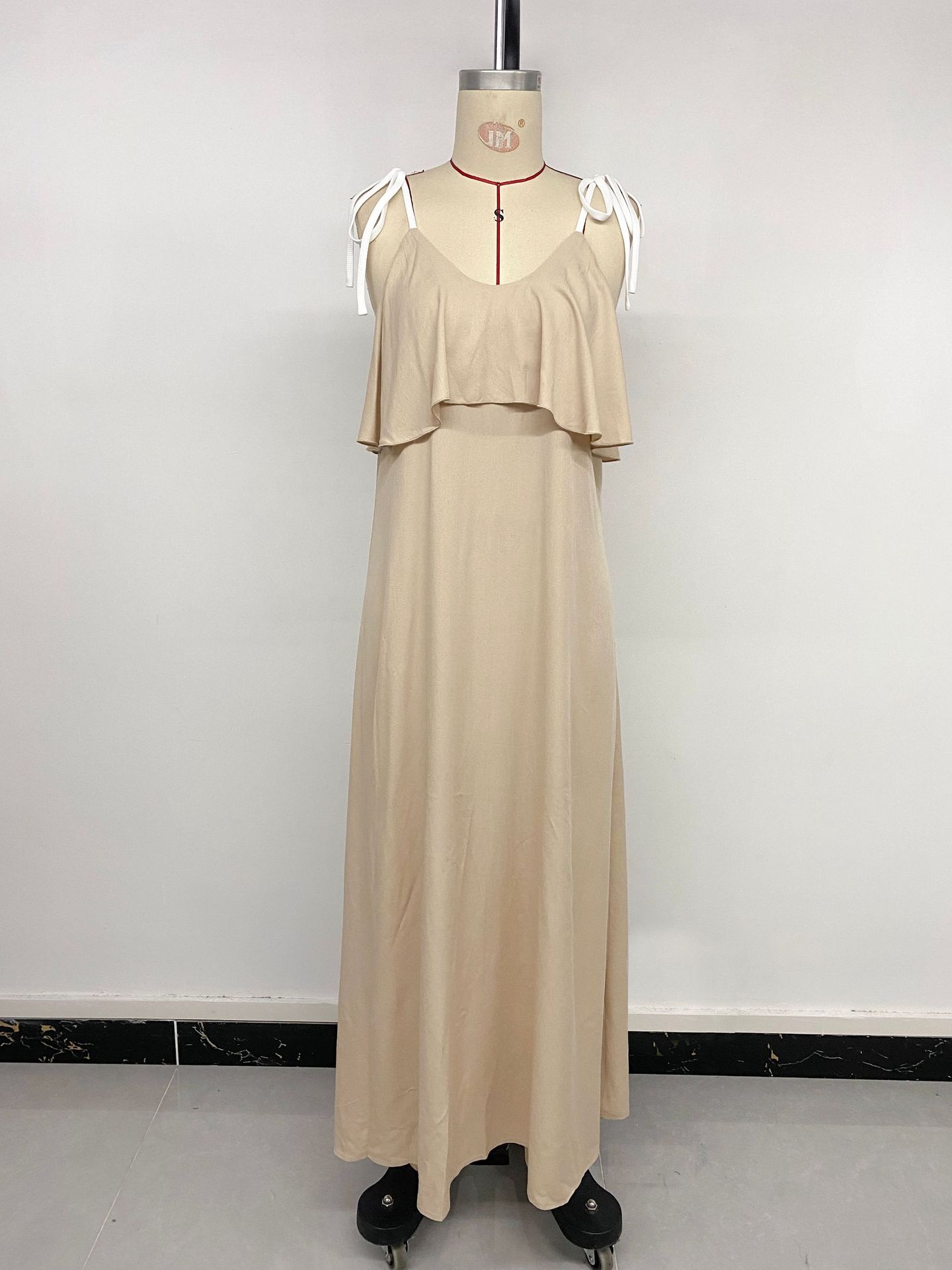 0 Review for Holiday Long Ruffled Decorative Sling Solid Color Dress
