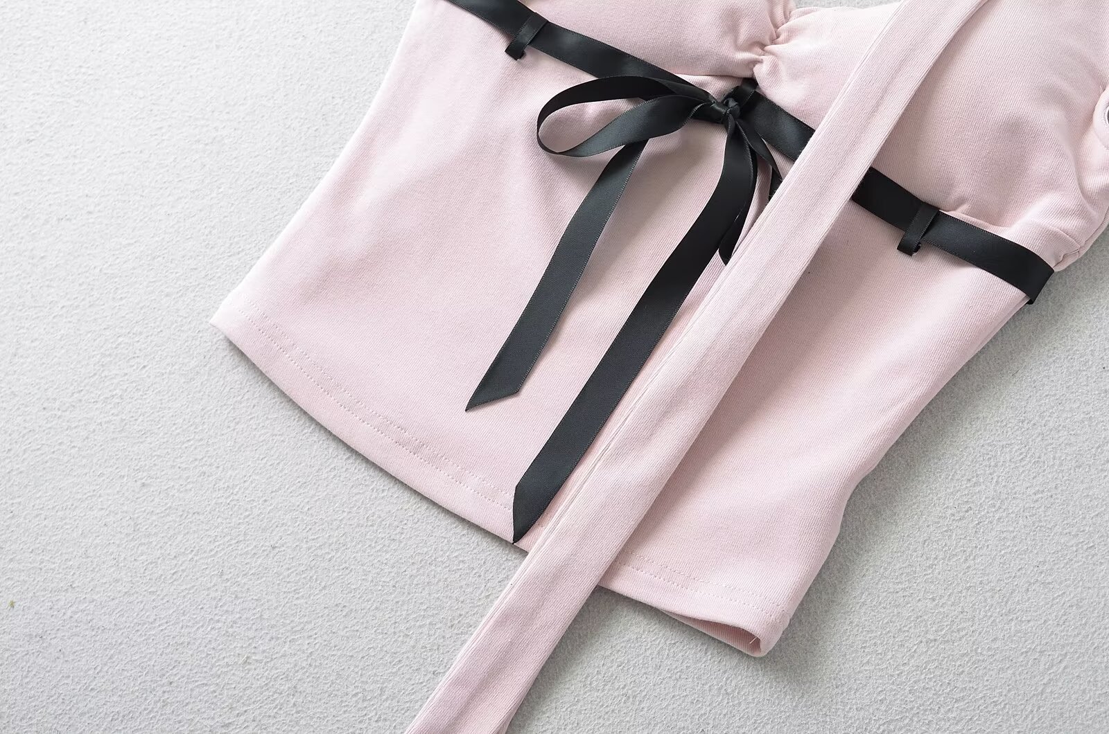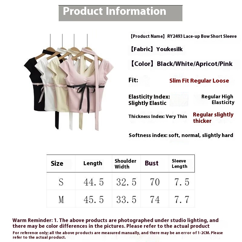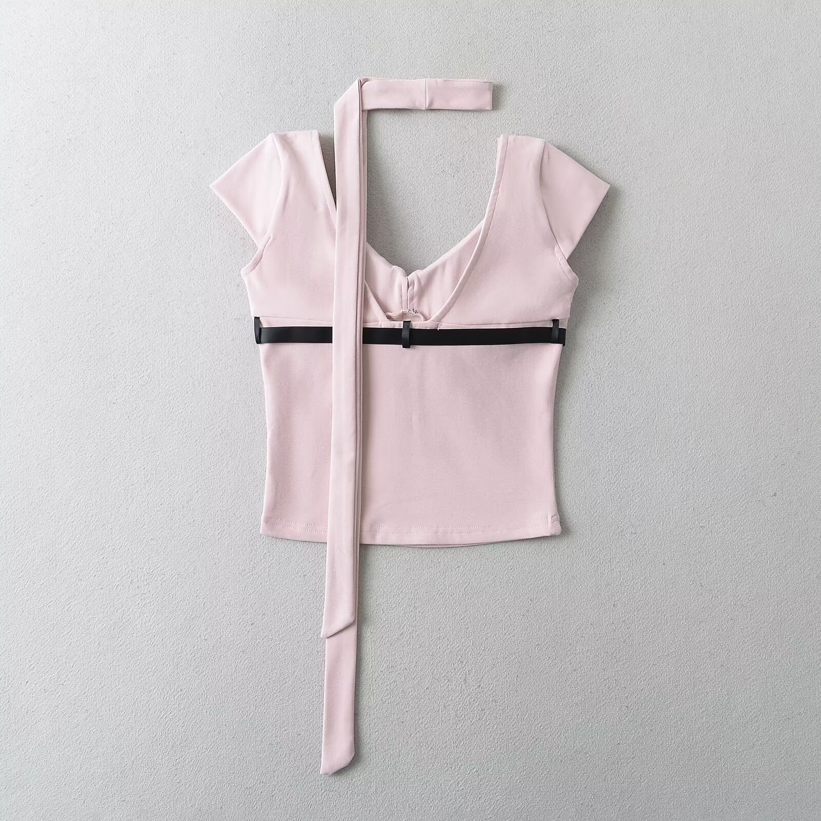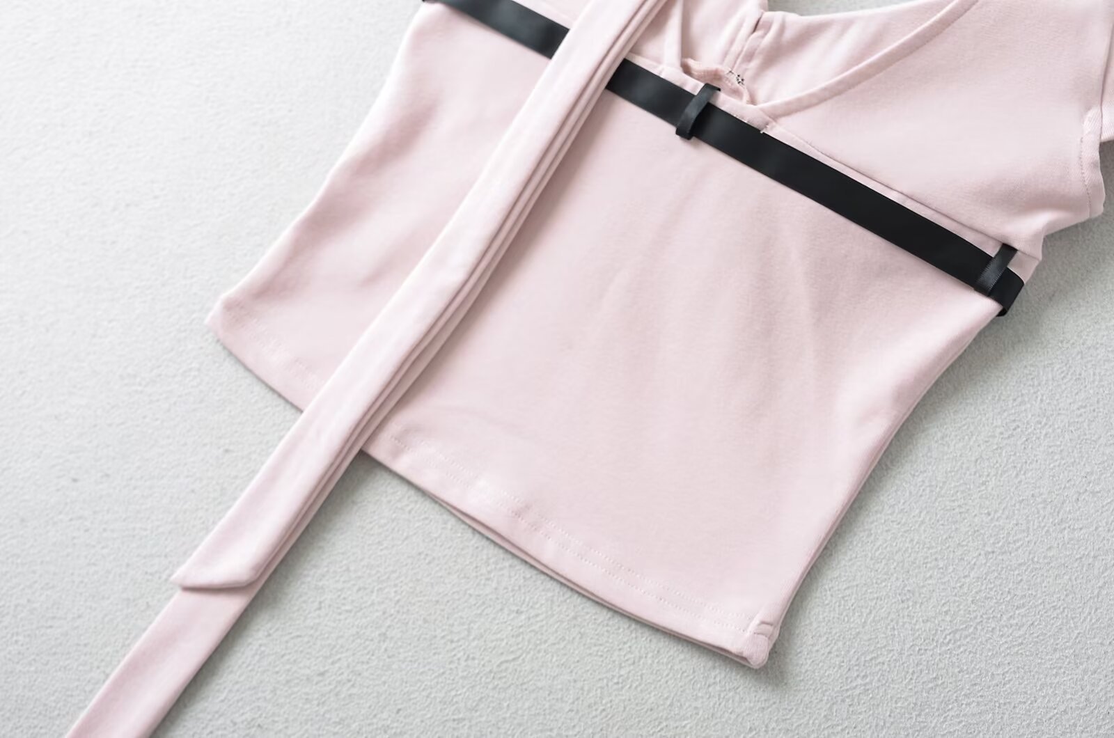 Hot Girl Niche Pure Desire V-neck Lace Up Tight Short-sleeved T-shirt