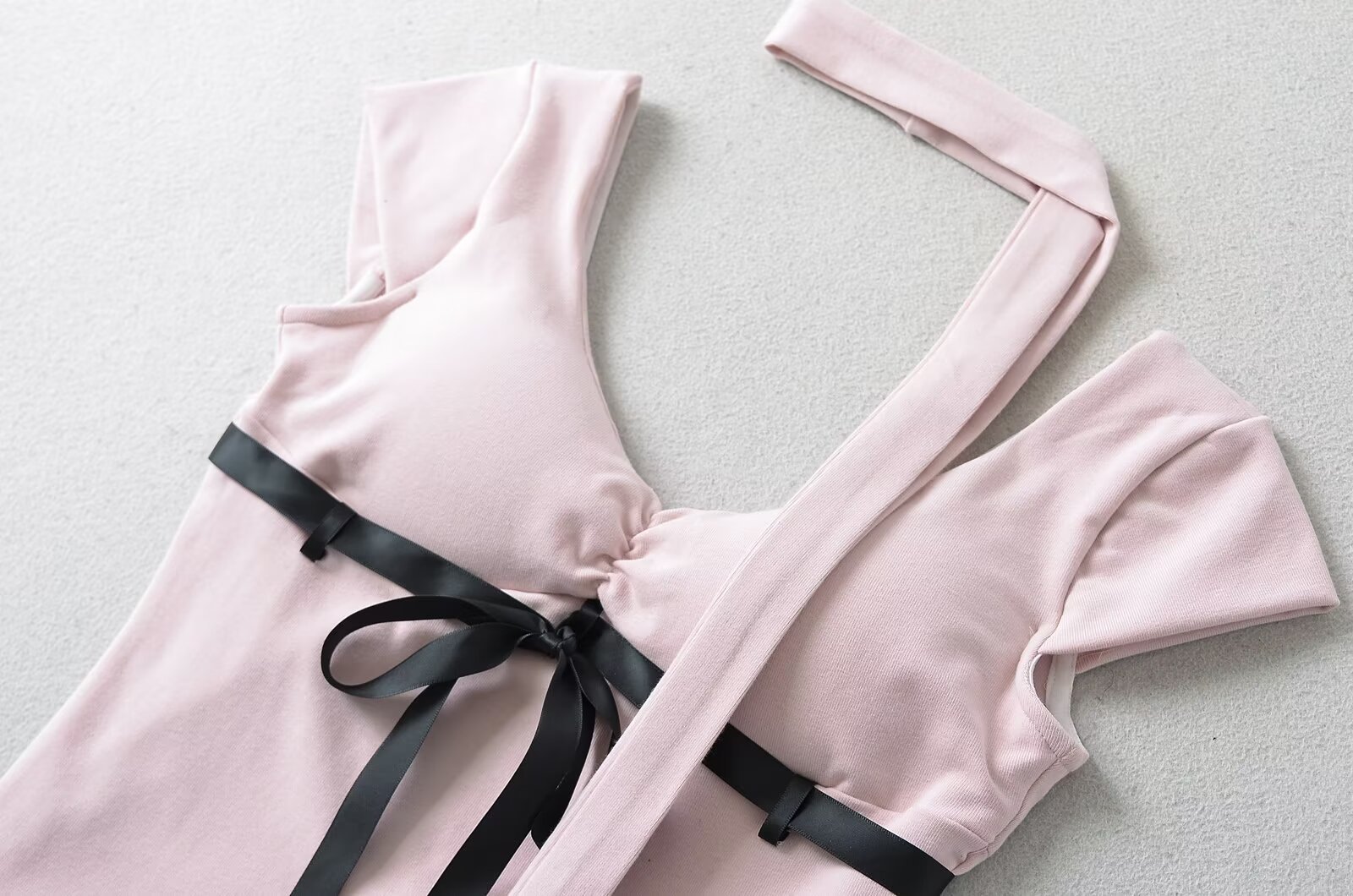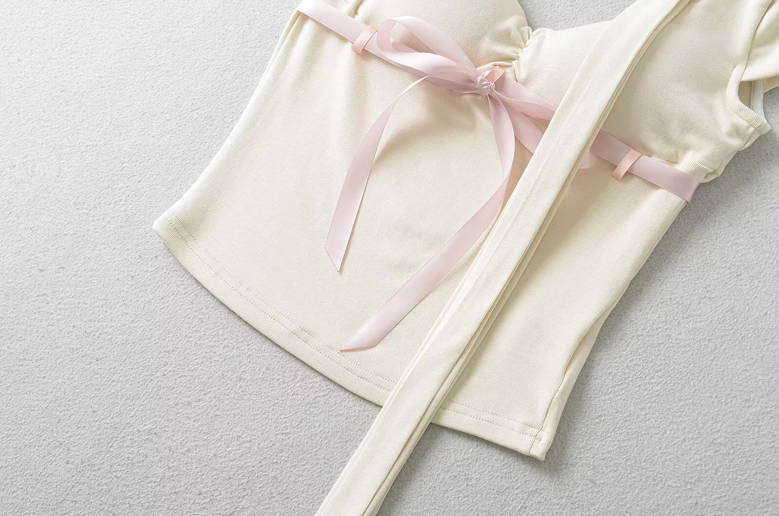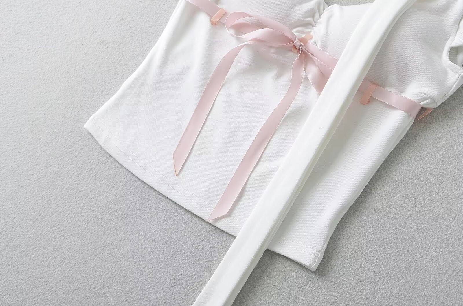 Hot Girl Niche Pure Desire V-neck Lace Up Tight Short-sleeved T-shirt