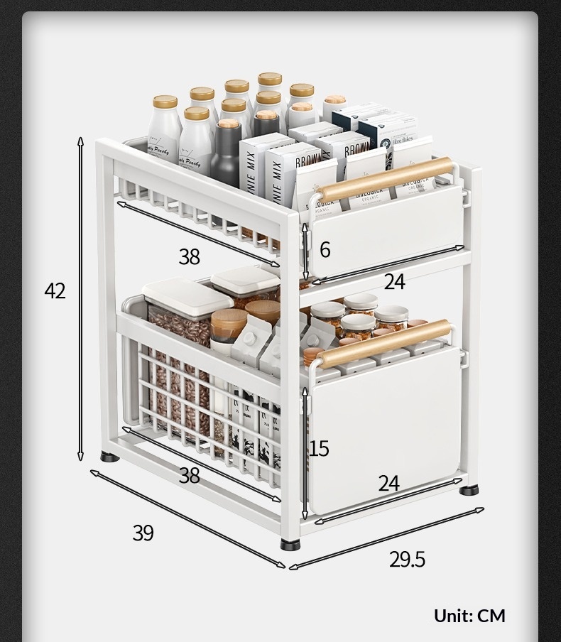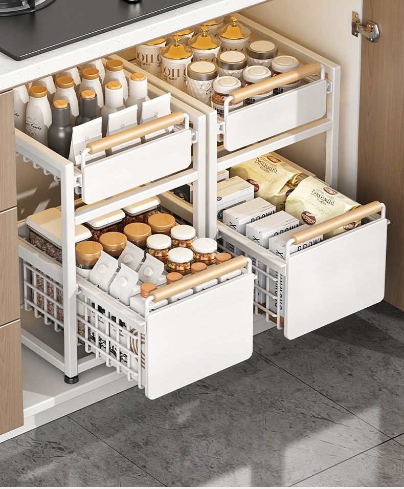 Installation-free Kitchen Square-tube Dish Cabinet With Built-in Multi-tier Drawer-style Storage Rack
