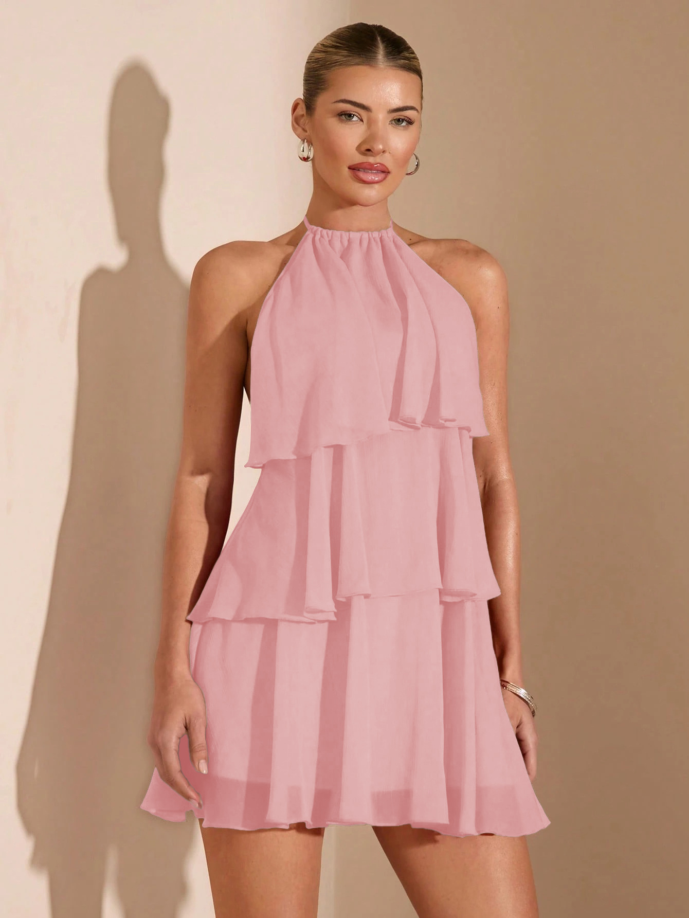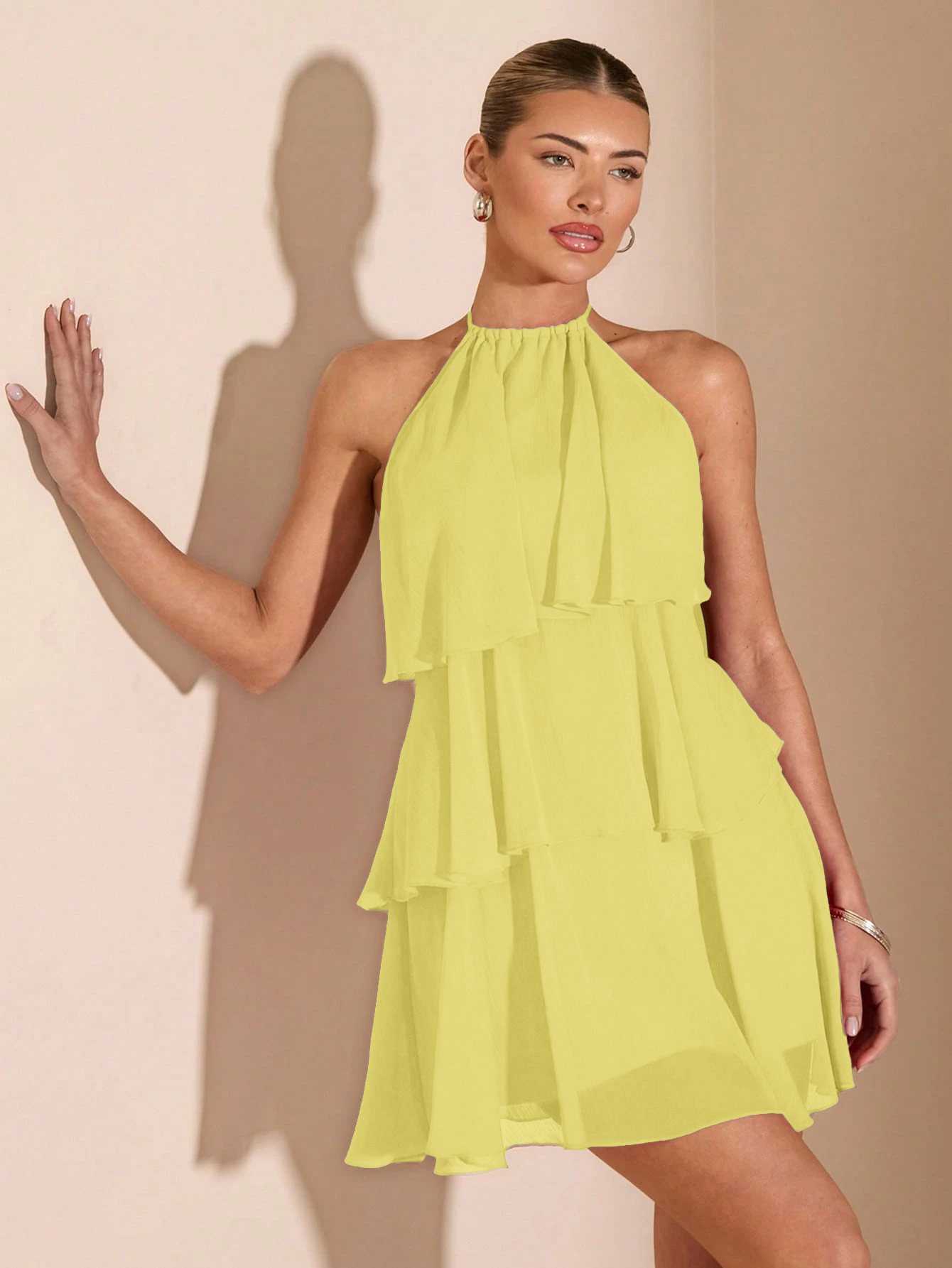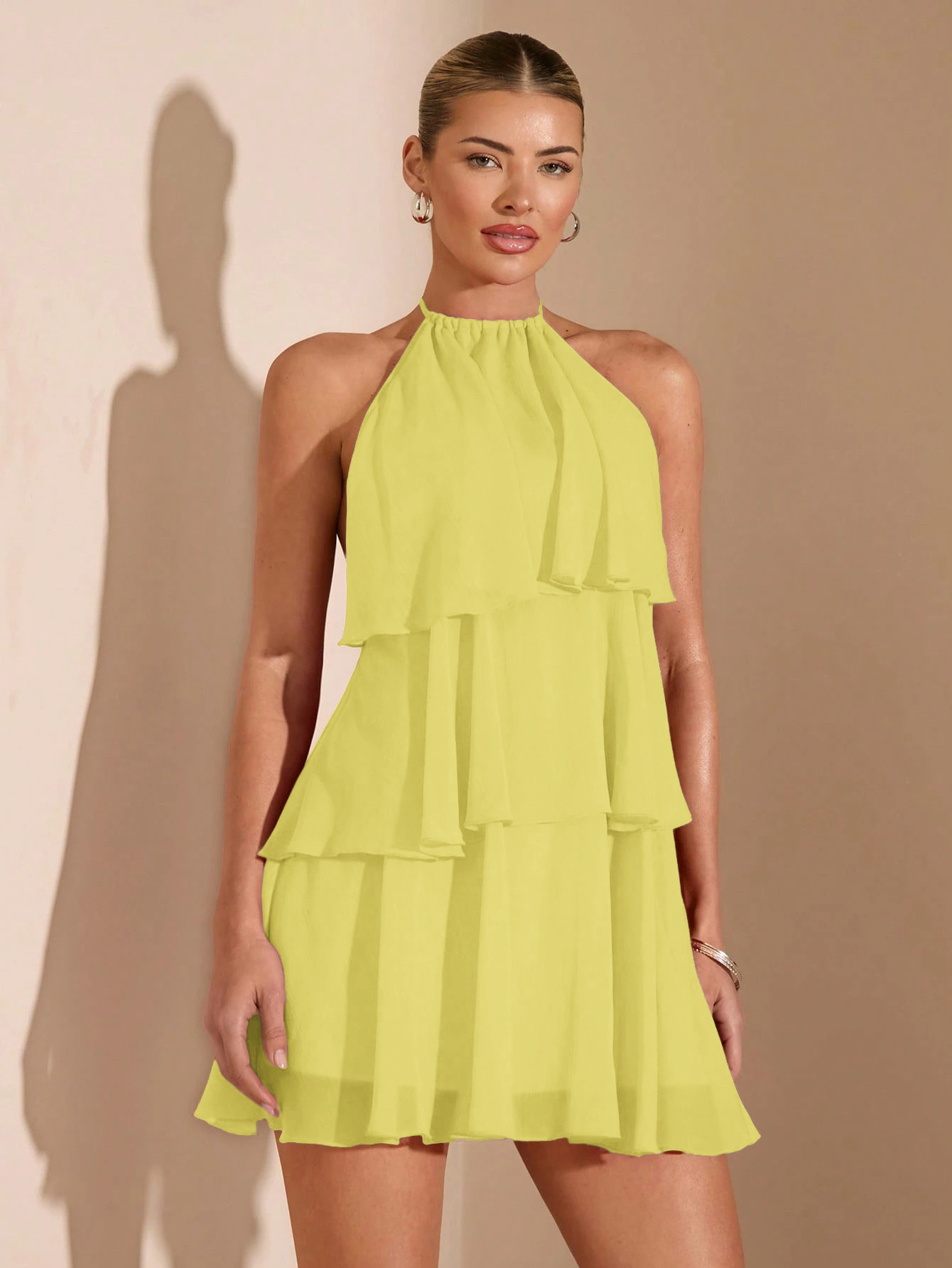 0 Review for Irregular Solid-color Sweet Lace-up Tiered Skirt