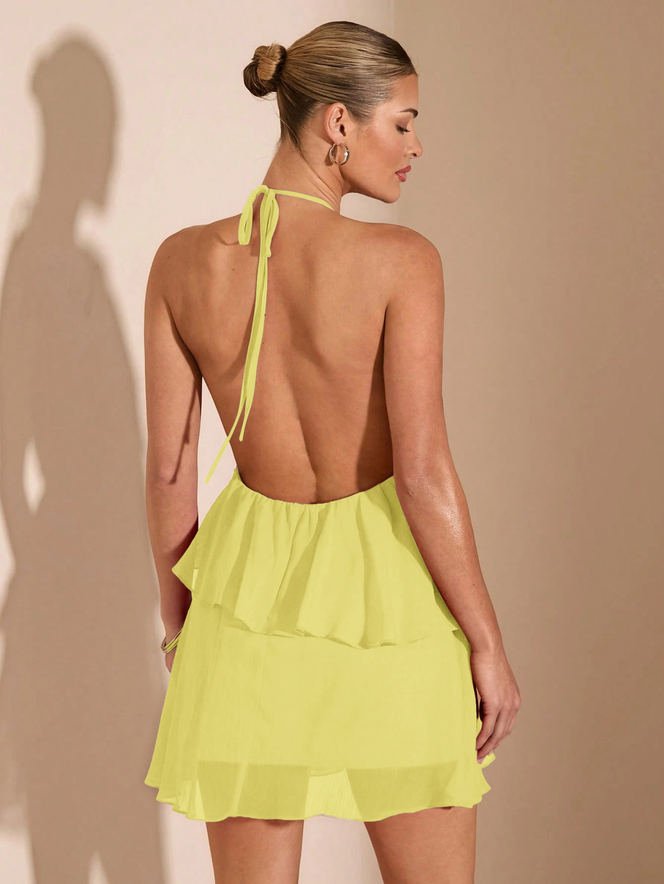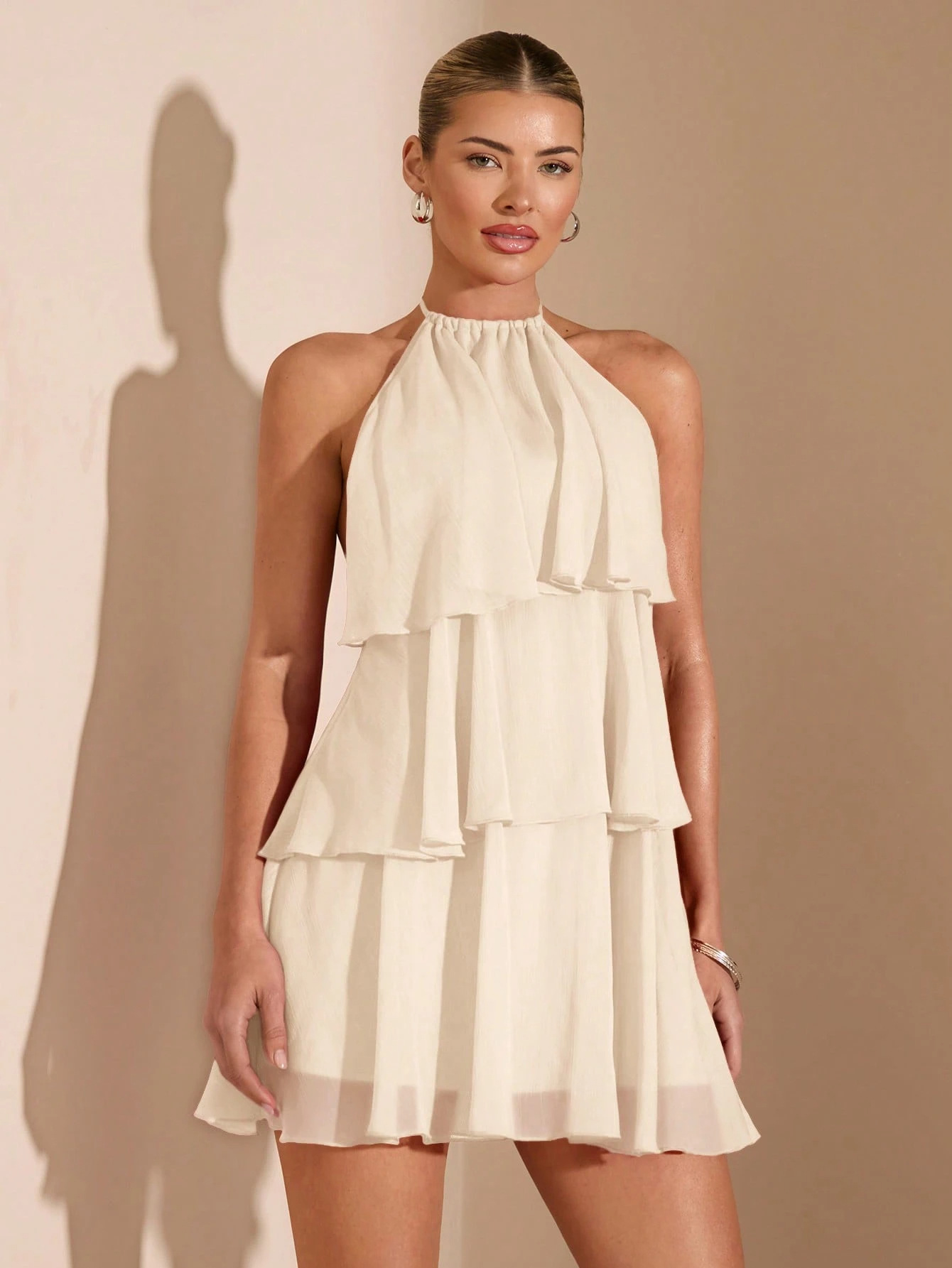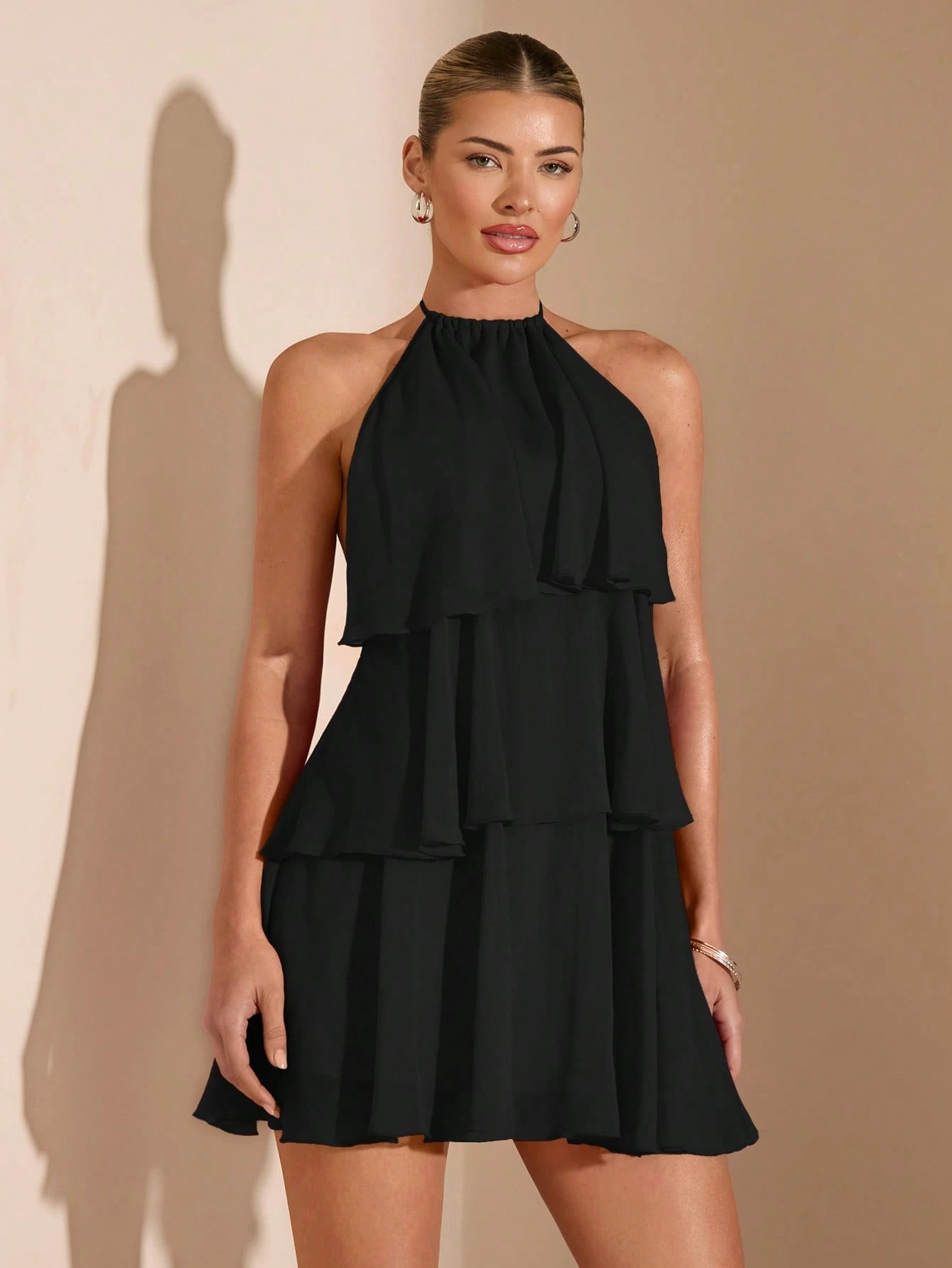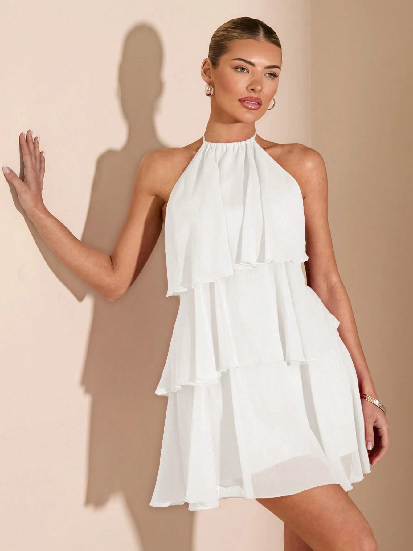 0 Review for Irregular Solid-color Sweet Lace-up Tiered Skirt