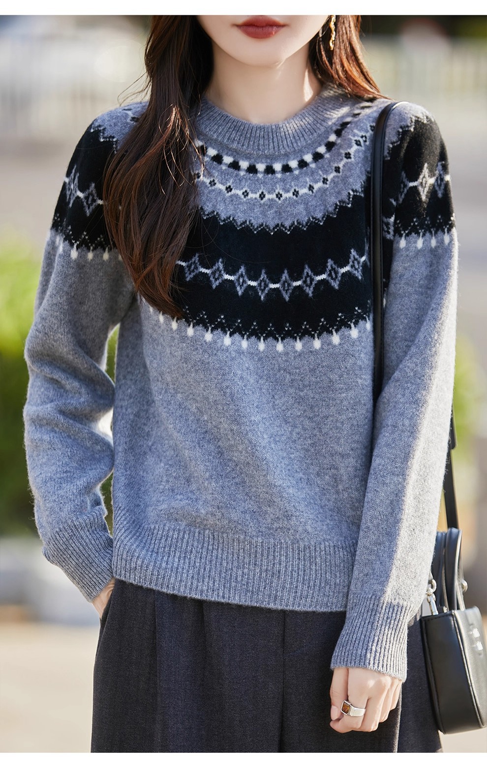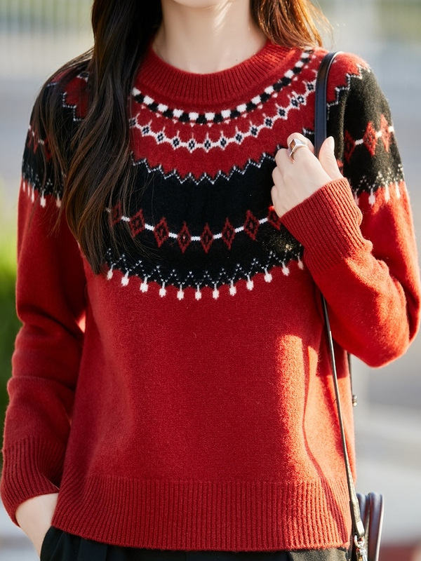 0 Review for Jacquard Round Neck Multicolor Sweater For Women