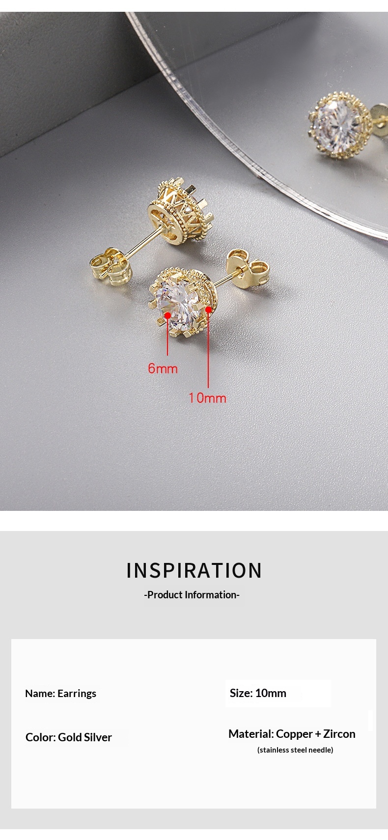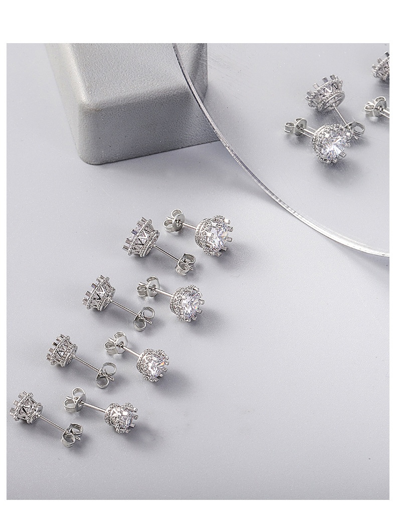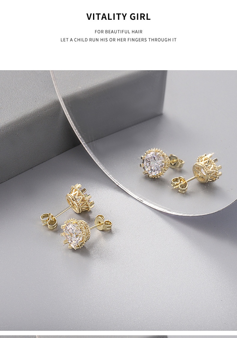 0 Review for Korean-style Trendy Crown Zircon Stud Earrings With A Floral Design