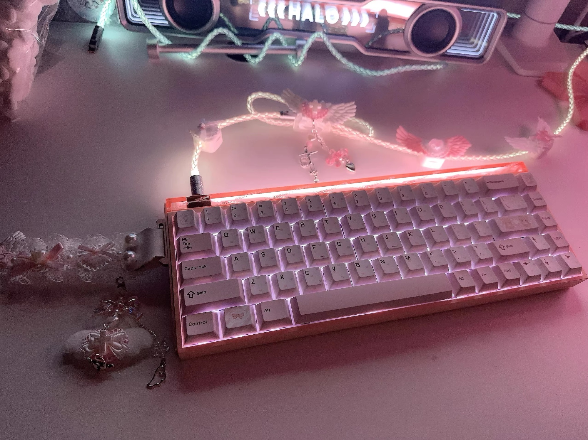 0 Review for Lace Black And Pink Keyboard Ribbon Charm