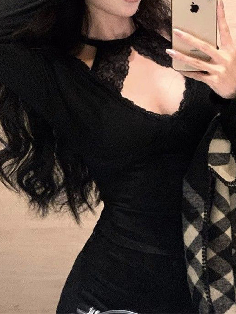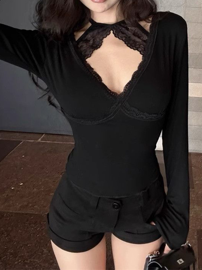 0 Review for Lace Halter-neck Form-fitting Cropped Top