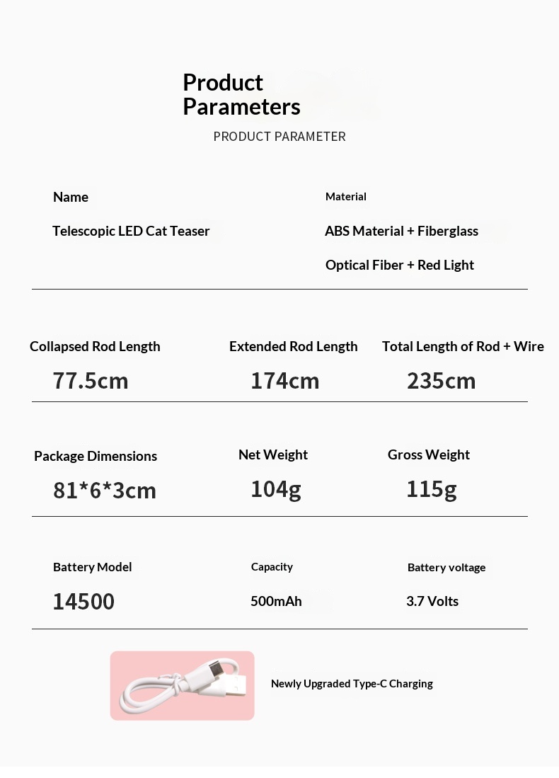 LED Interactive USB-Rechargeable Telescopic Cat Toy Rod To Keep Your Cat Entertained