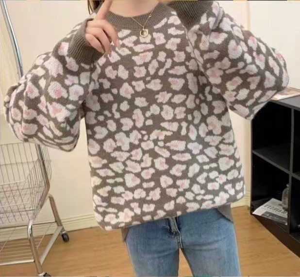 0 Review for Leopard Jacquard Contrast Color Loose Thick Sweater Pullover Sweater