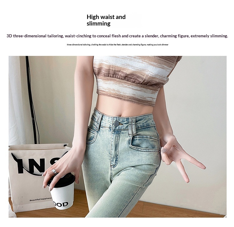 0 Review for Light Blue American-Style Flared Jeans For Women
