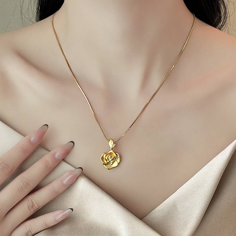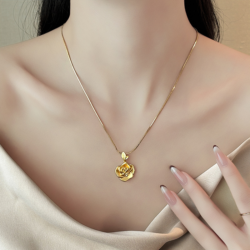 Color: Gold rose pendant necklace