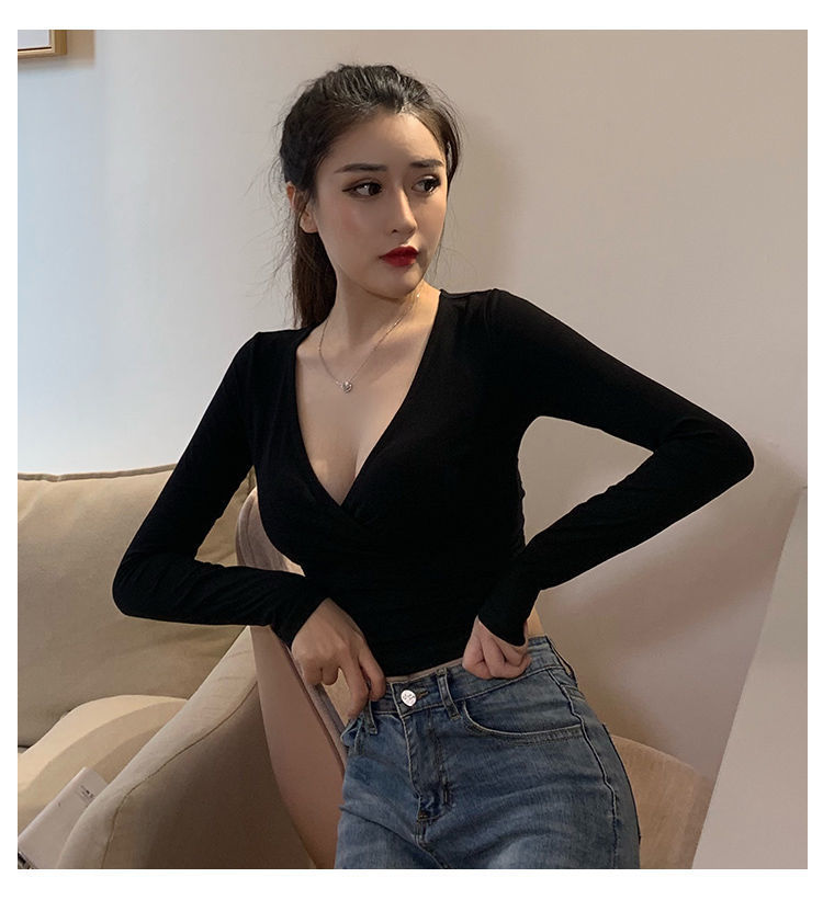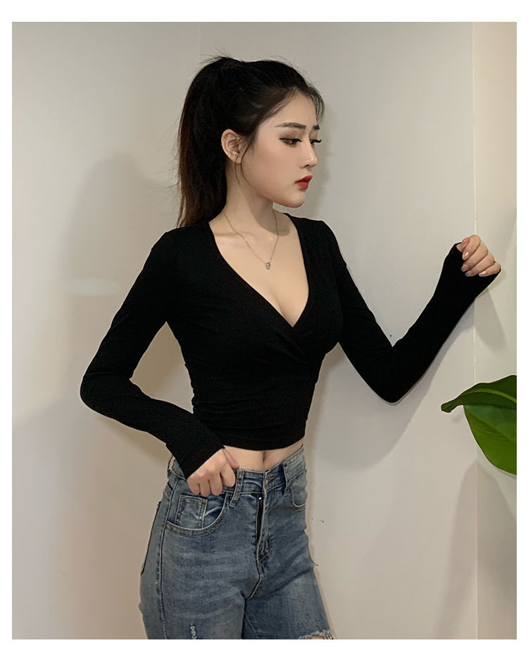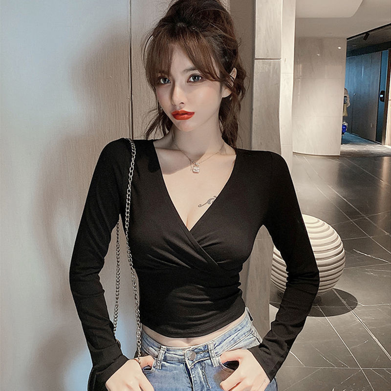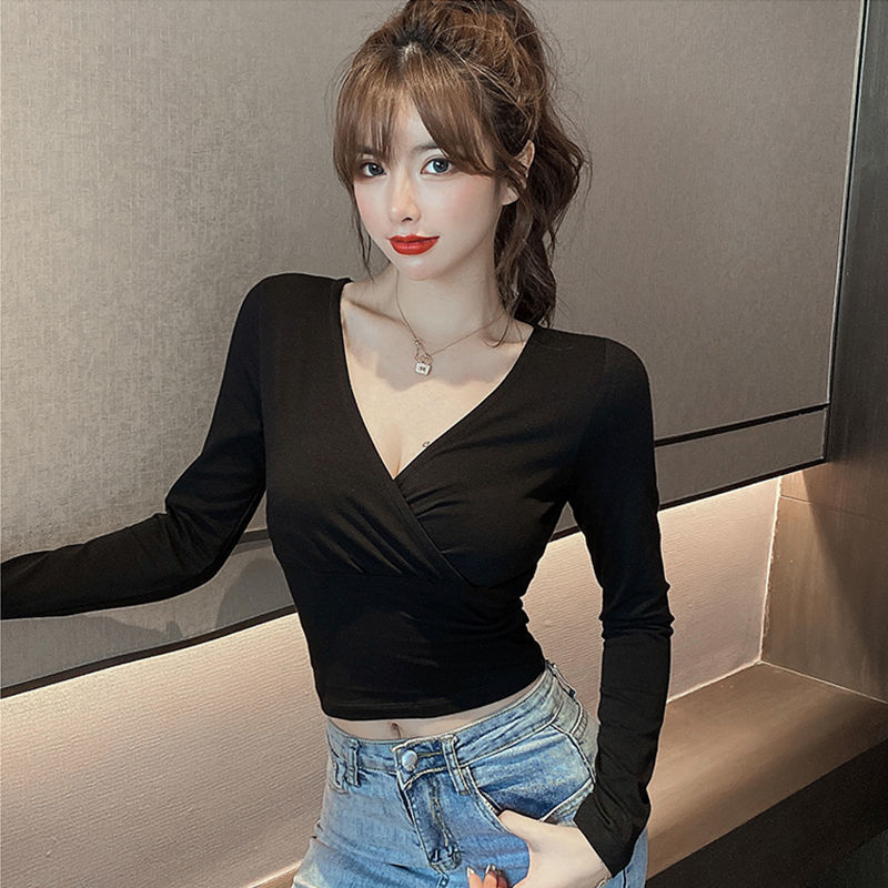 0 Review for Long Sleeve Short Sexy Tight Navel Bottoming Shirt Women's Top