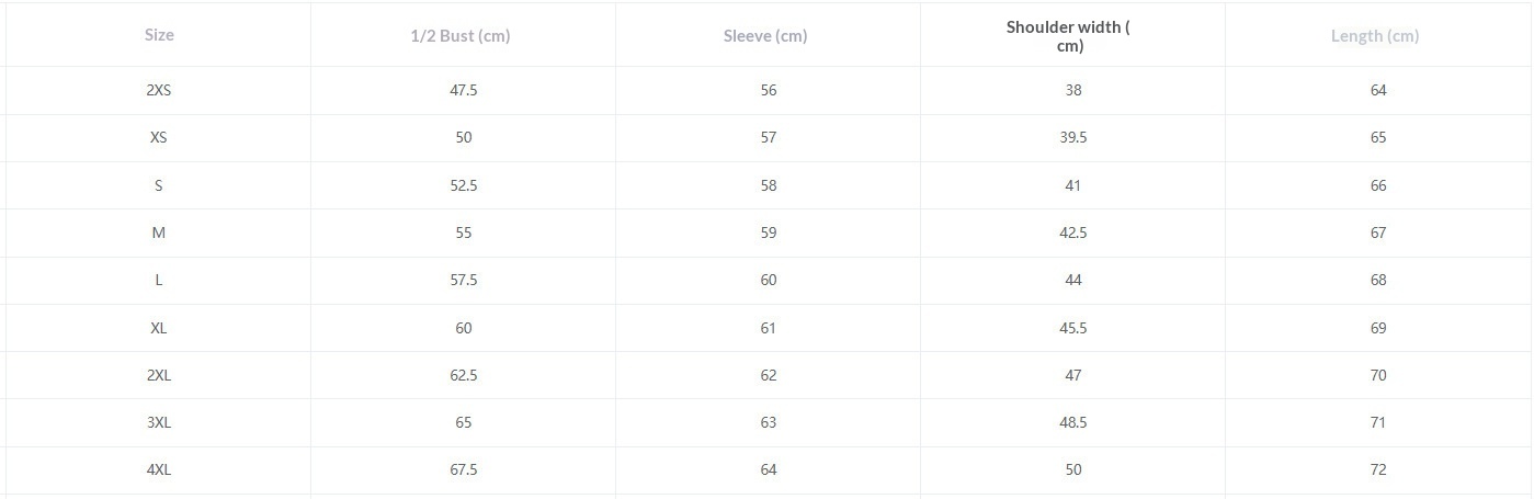 Sizes: XS, S, M, L, XL, XXL, 3XL, 4XL