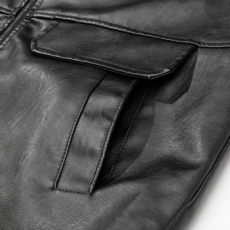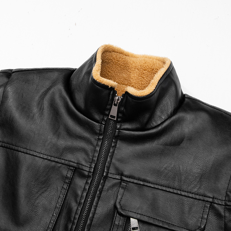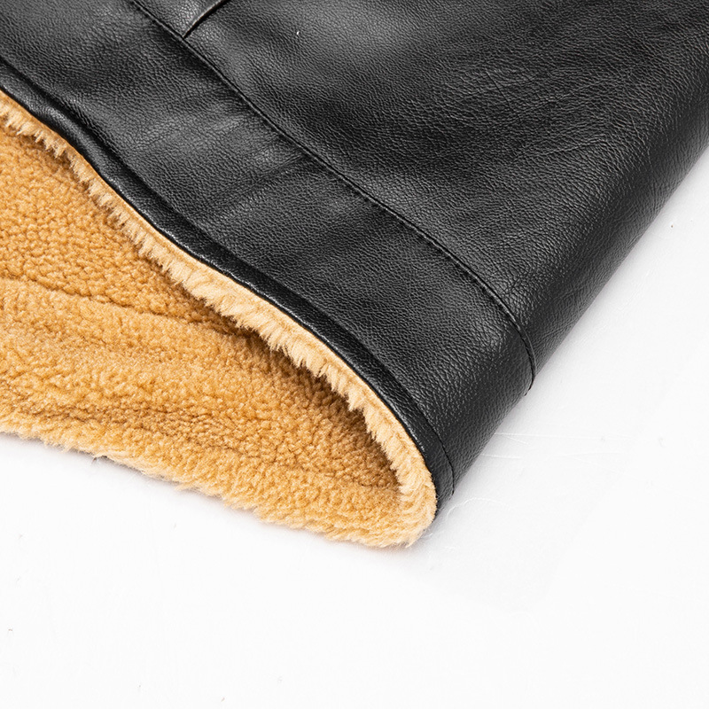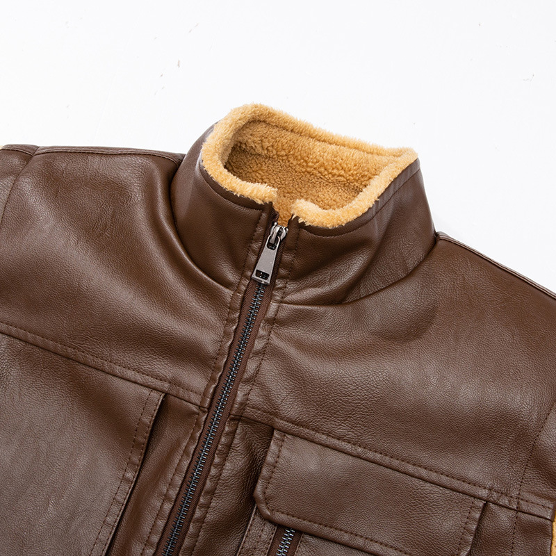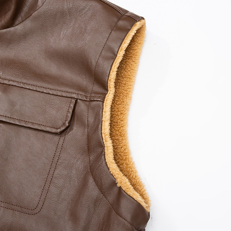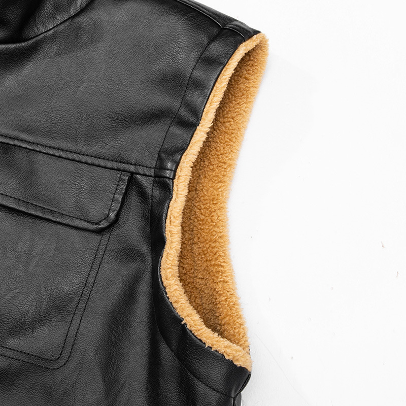 Male Leather Vest Autumn And Winter Fleece-lined Stand Collar Vest
