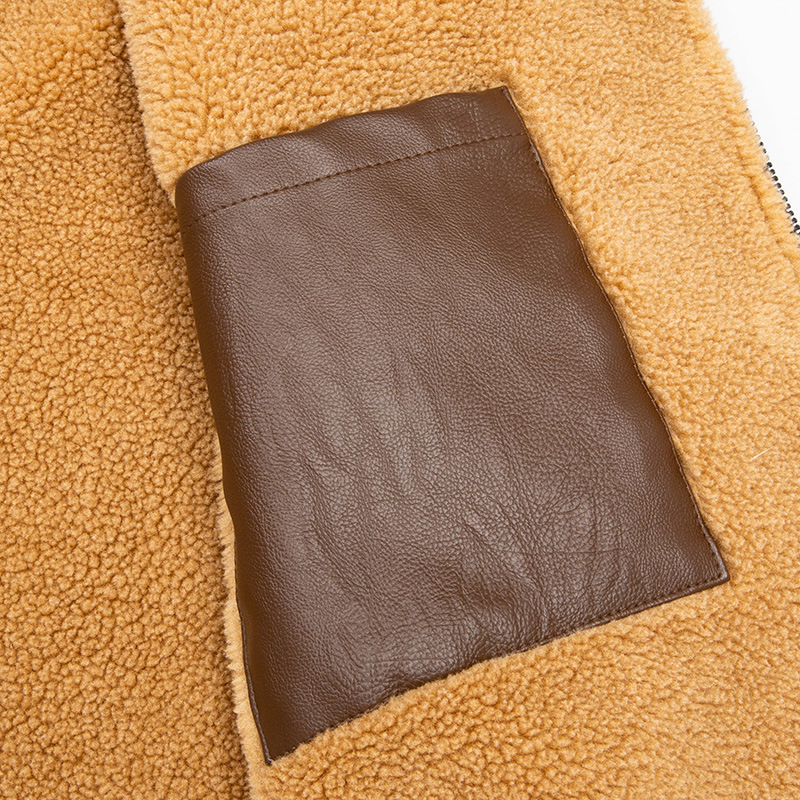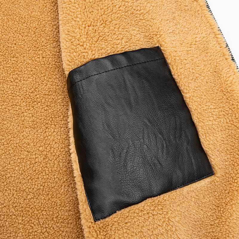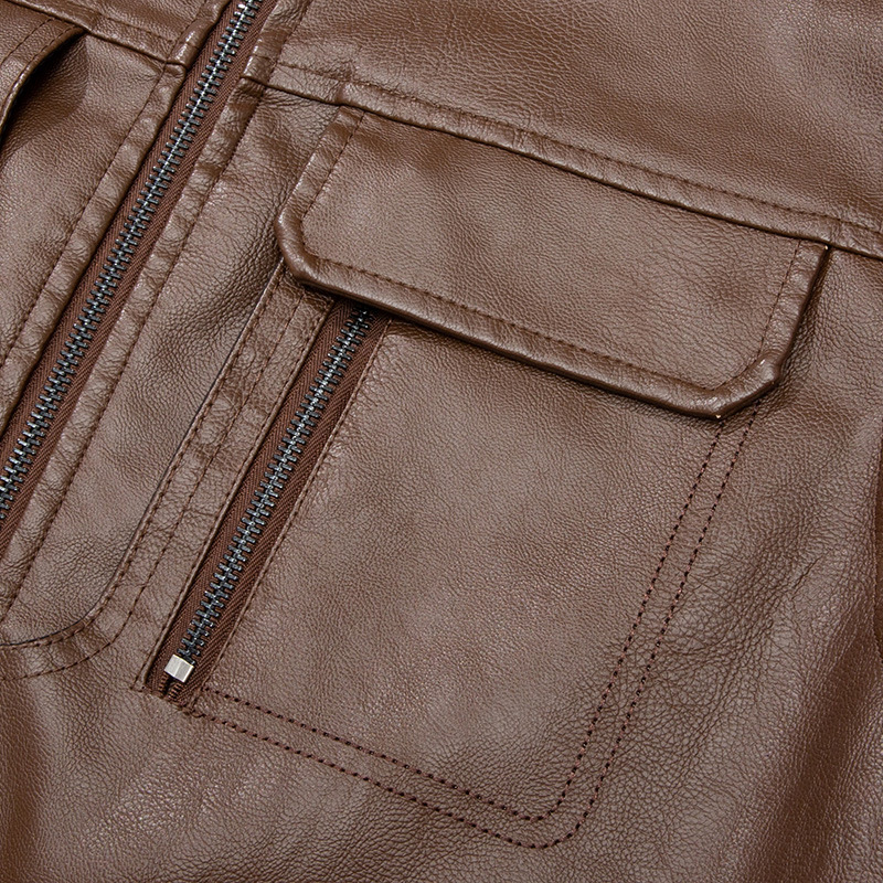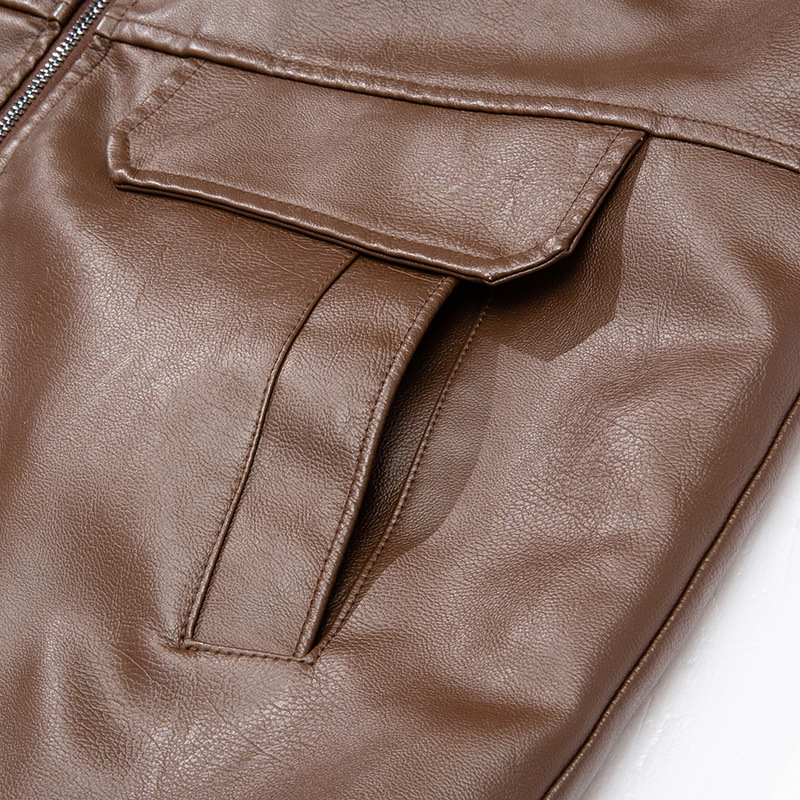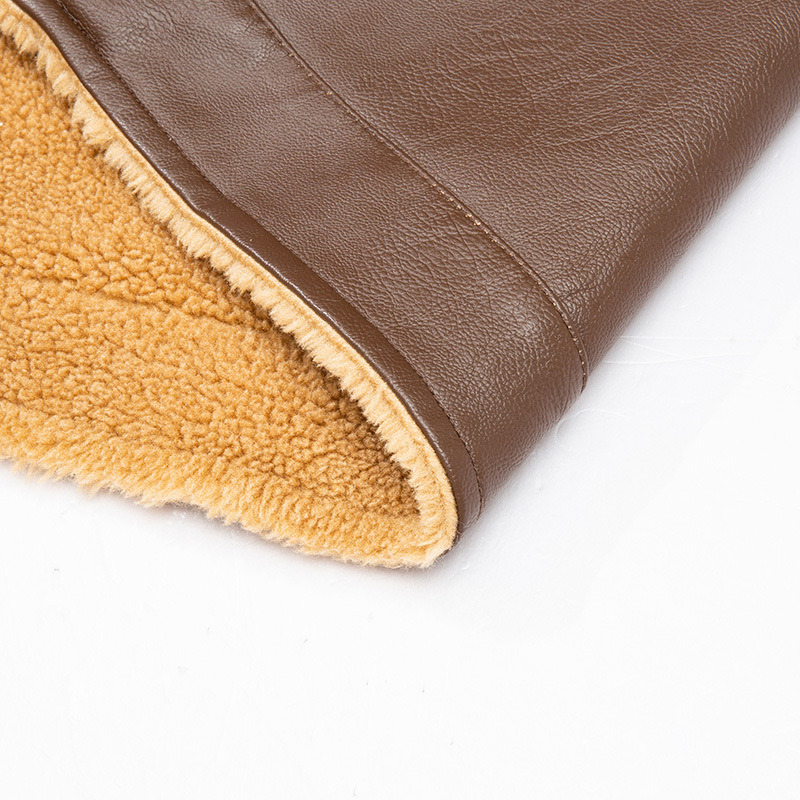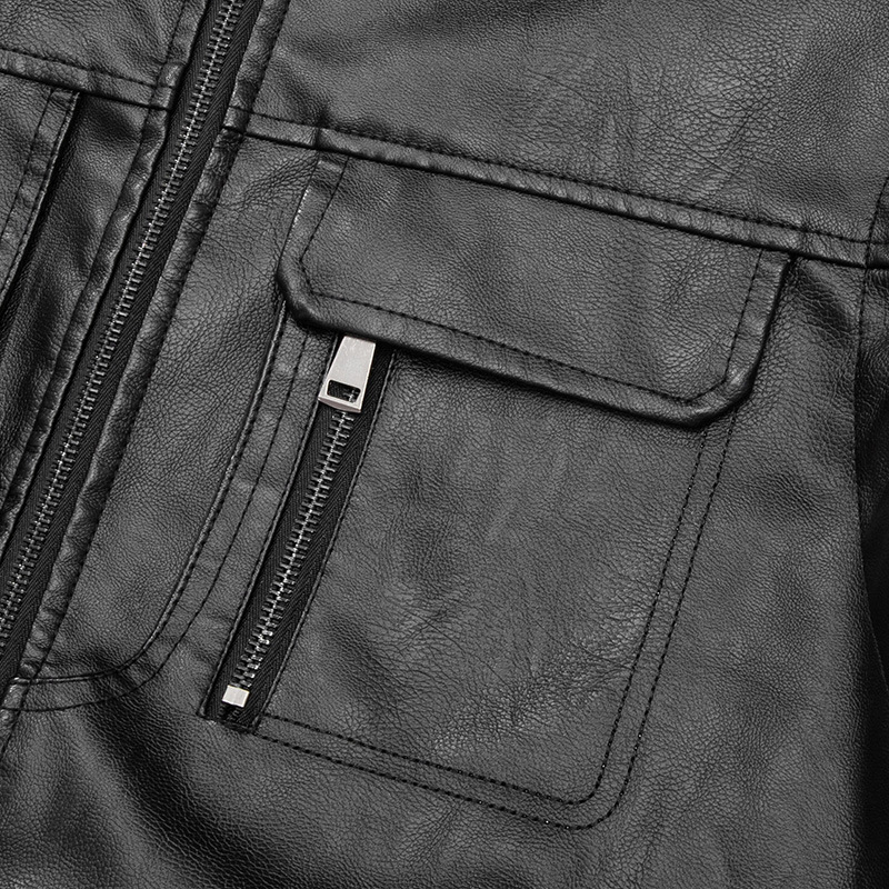 Male Leather Vest Autumn And Winter Fleece-lined Stand Collar Vest