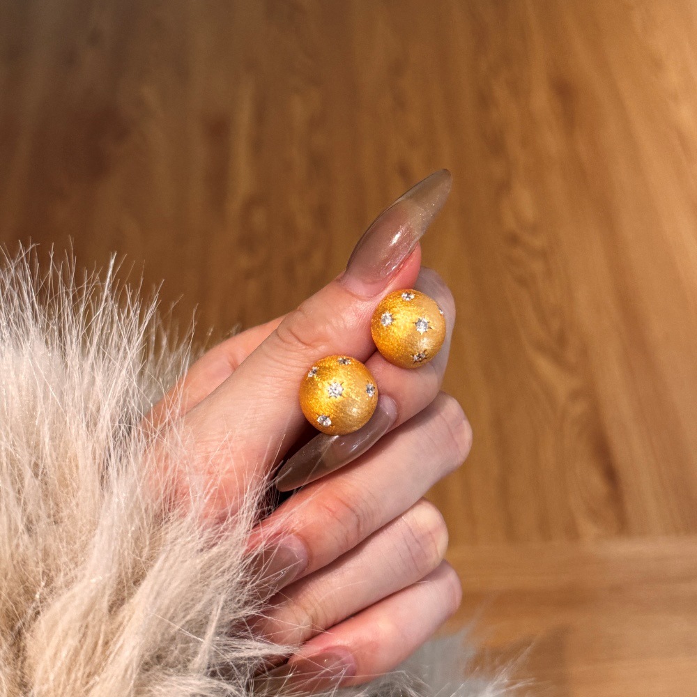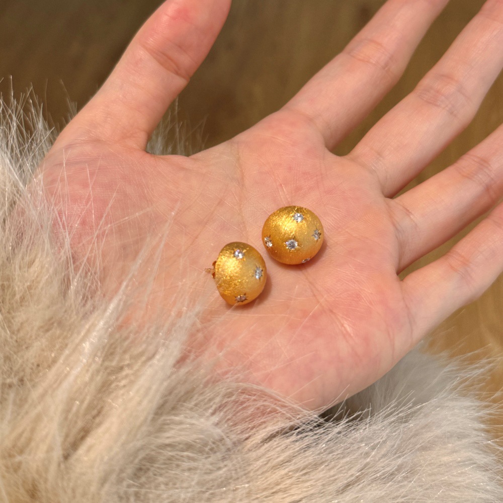 0 Review for Medieval Gilding Silk Round Design Ear Studs
