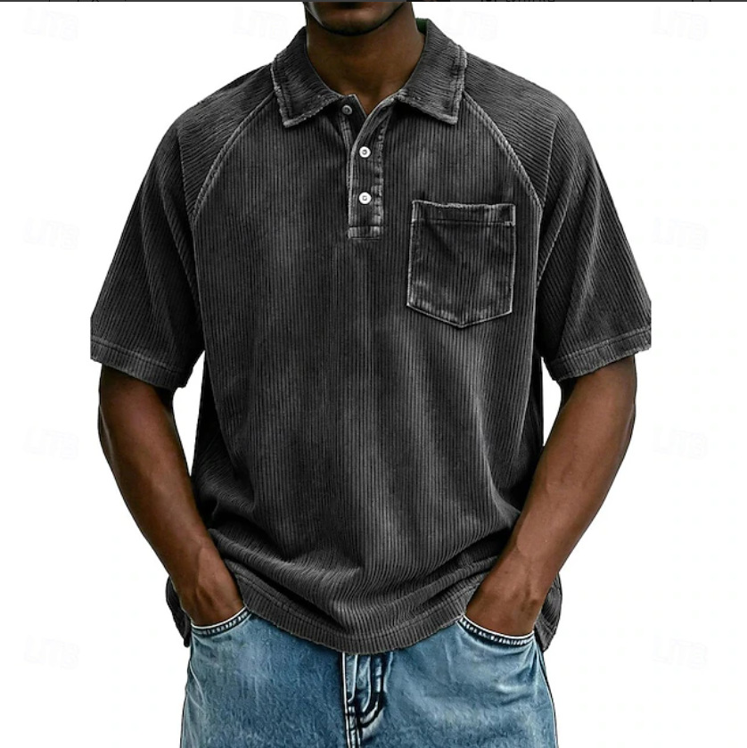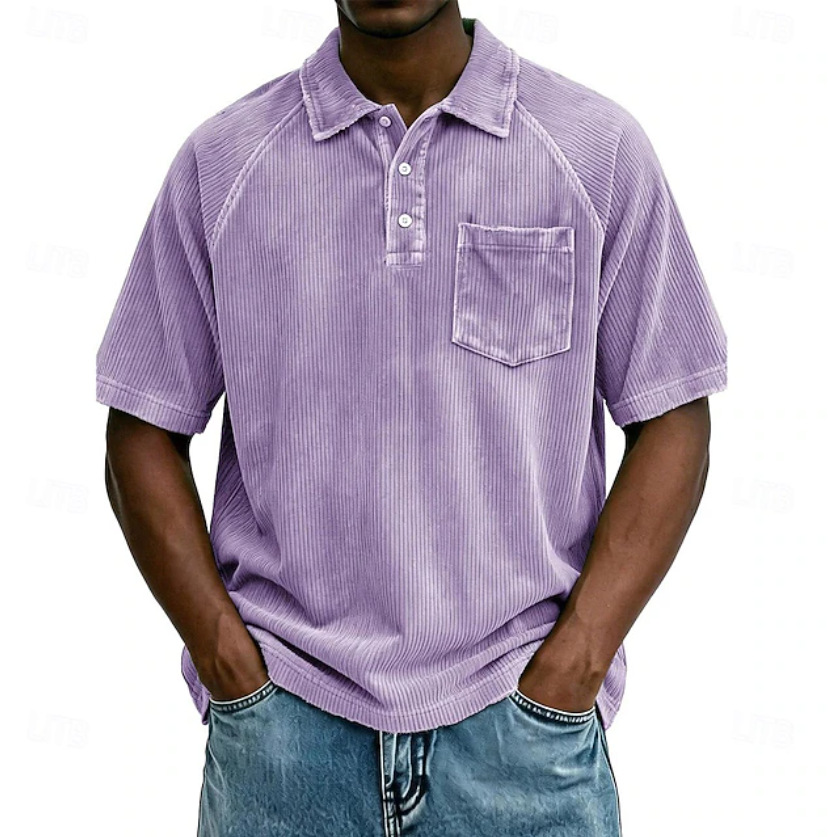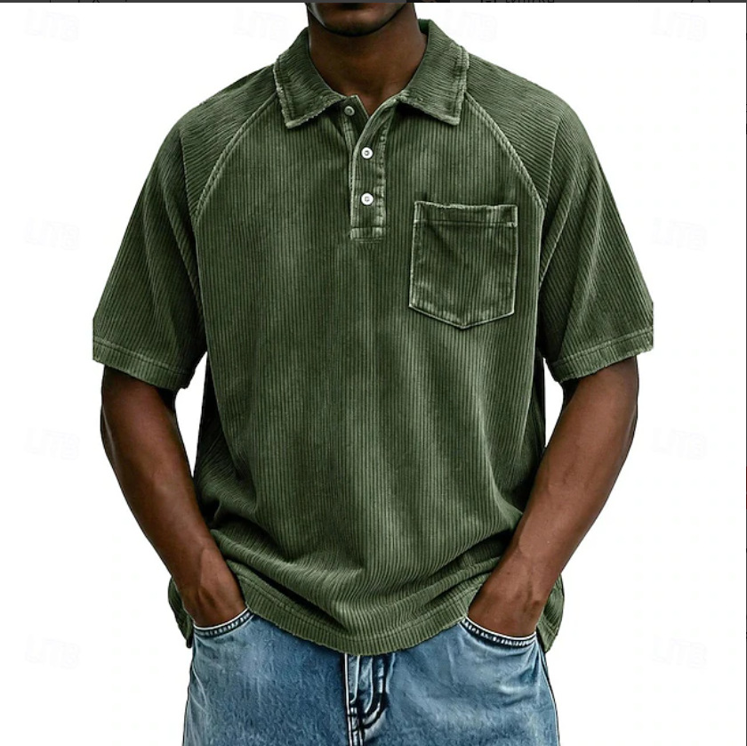 0 Review for Men's Casual Lapel Corduroy Short-Sleeve Polo Shirt