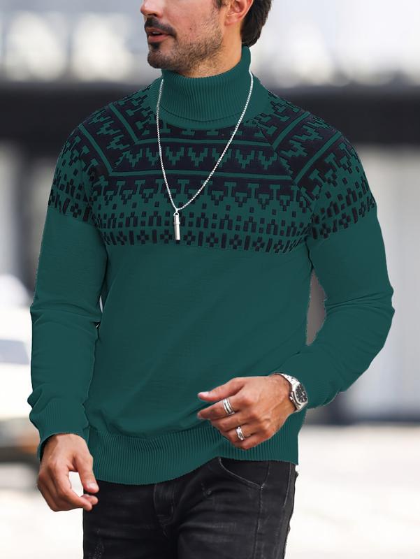 0 Review for Men's Casual Printing High Collar Loose All-match Sweater