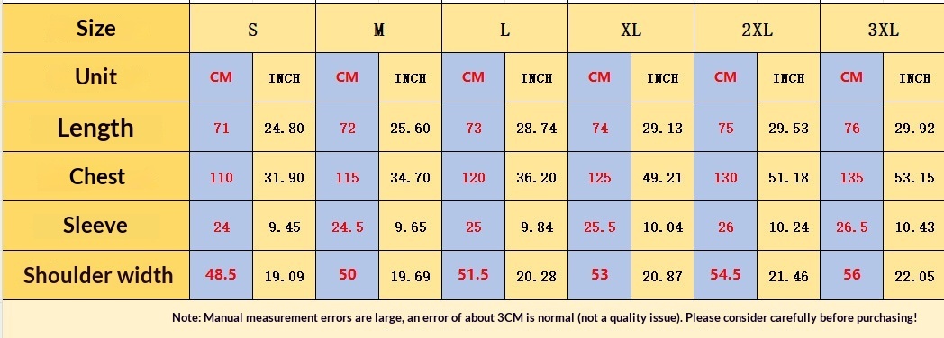 1. Asian sizes are 1 to 2 sizes smaller than European and American people. Choose the larger size if your size between two sizes. Please allow 2-3cm differences due to manual measurement. 2. Please check the size chart carefully before you buy the item, if you don't know how to choose size, please contact our customer service. 3.As you know, the different computers display colors differently, the color of the actual item may vary slightly from the following images.