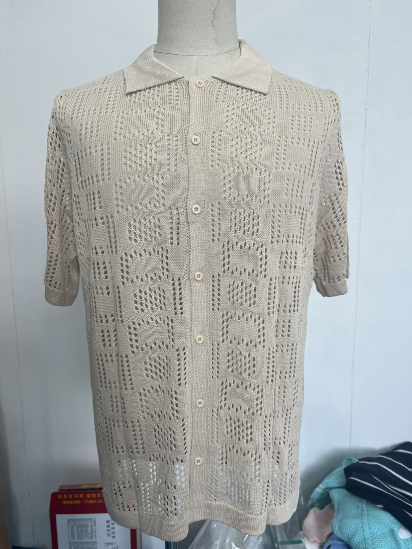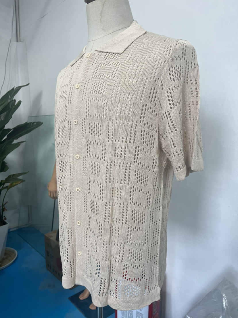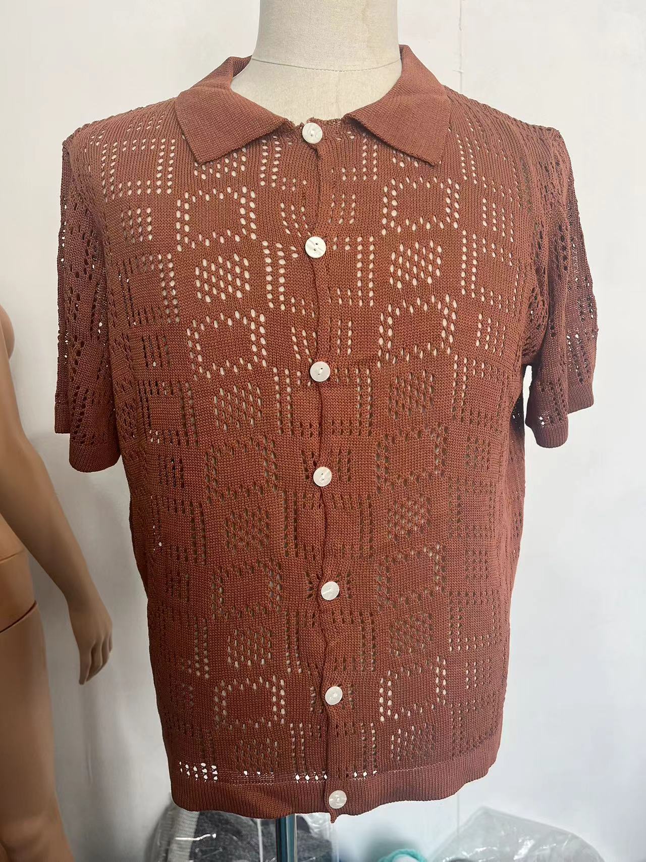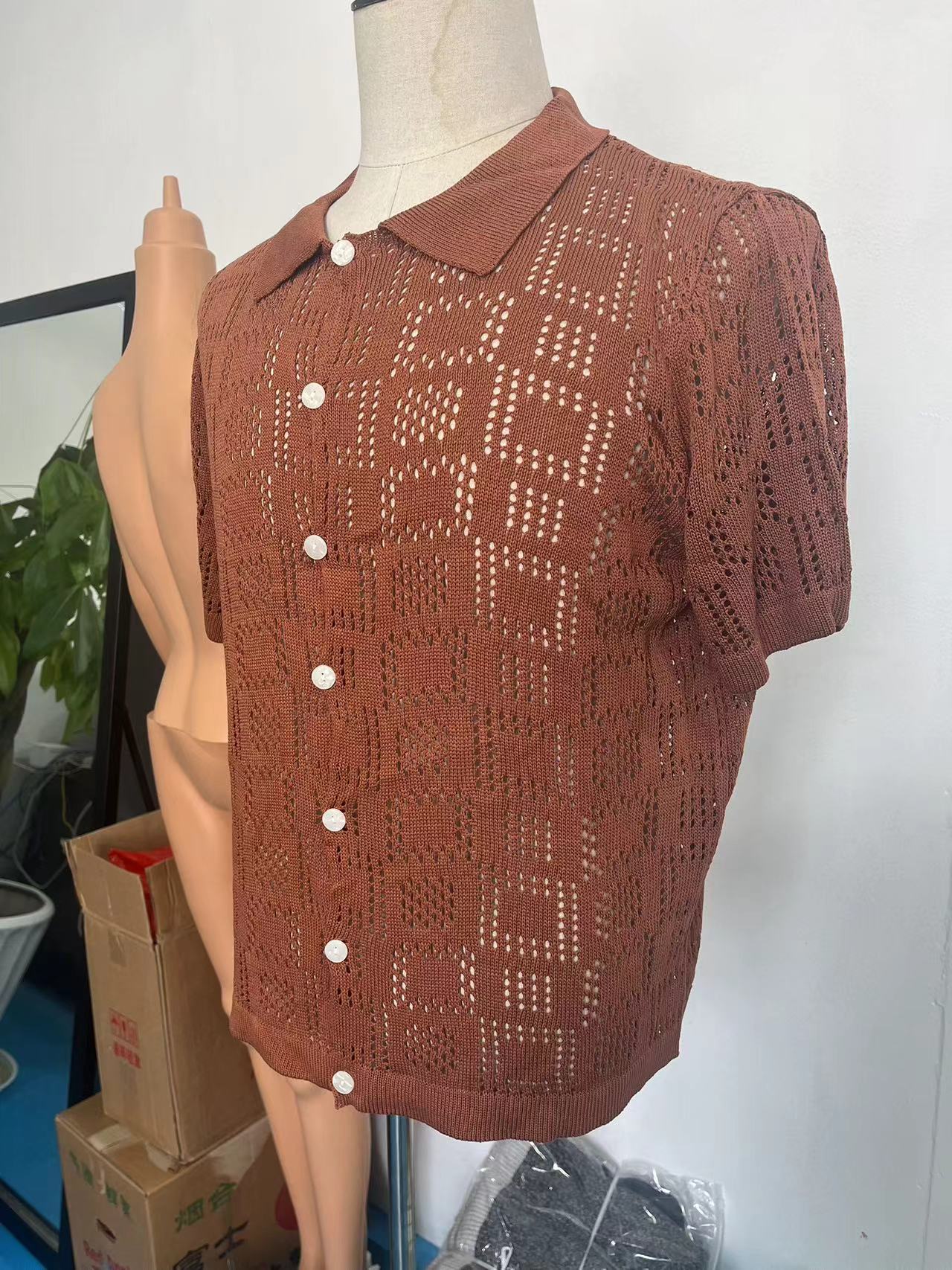 0 Review for Men's Lapel Hollow-out Short-sleeve Shirt