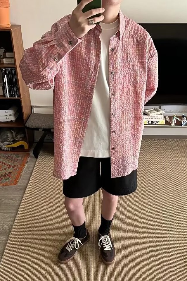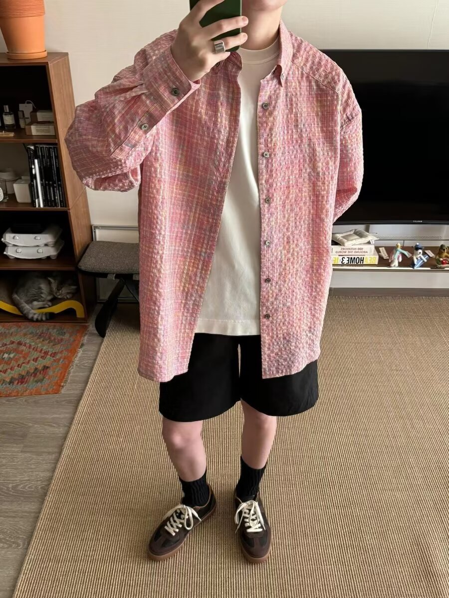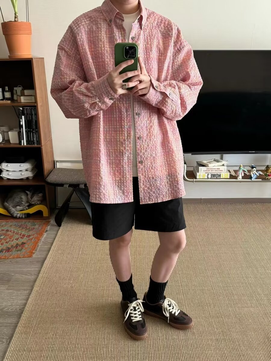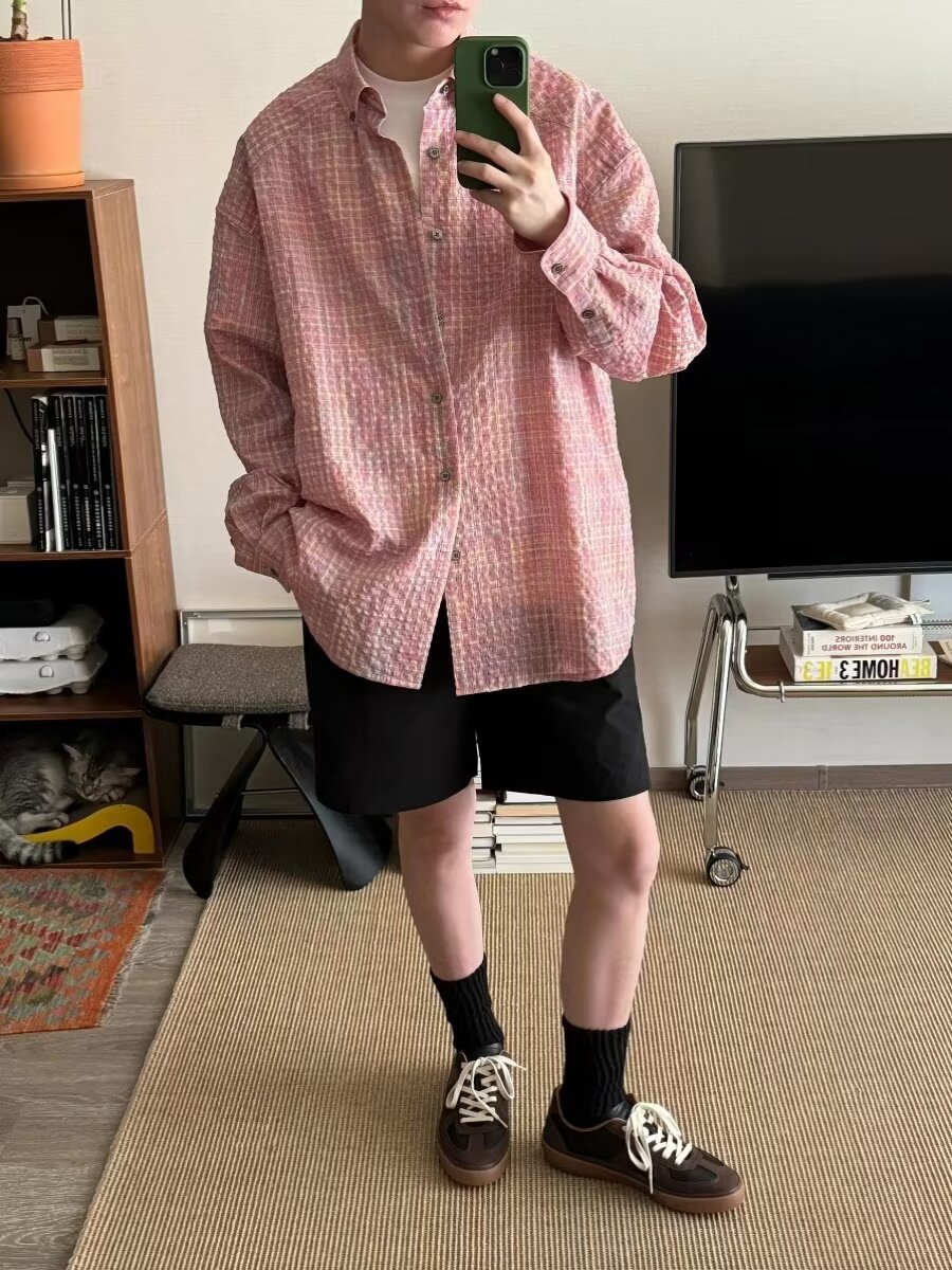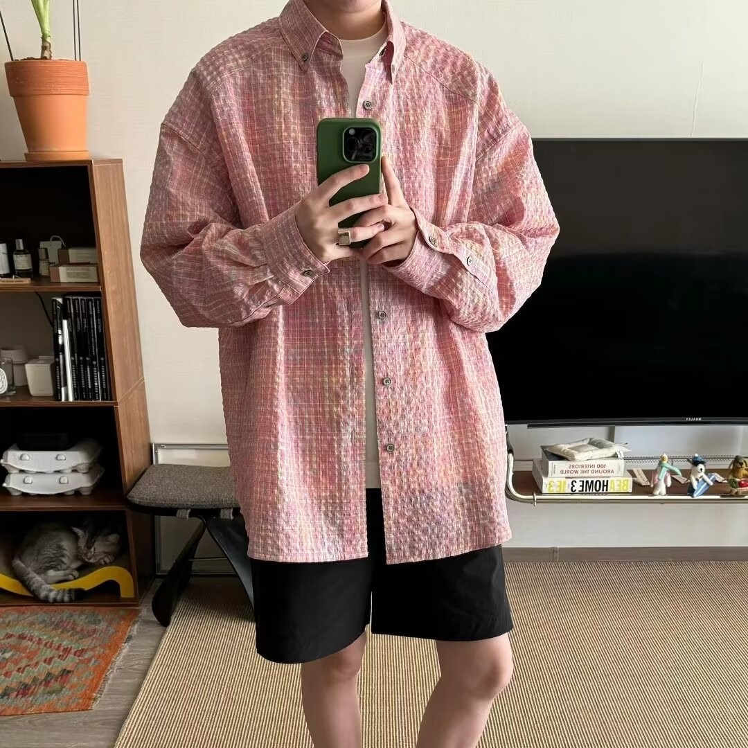 0 Review for Men's Retro Loose Casual Plaid Shirt