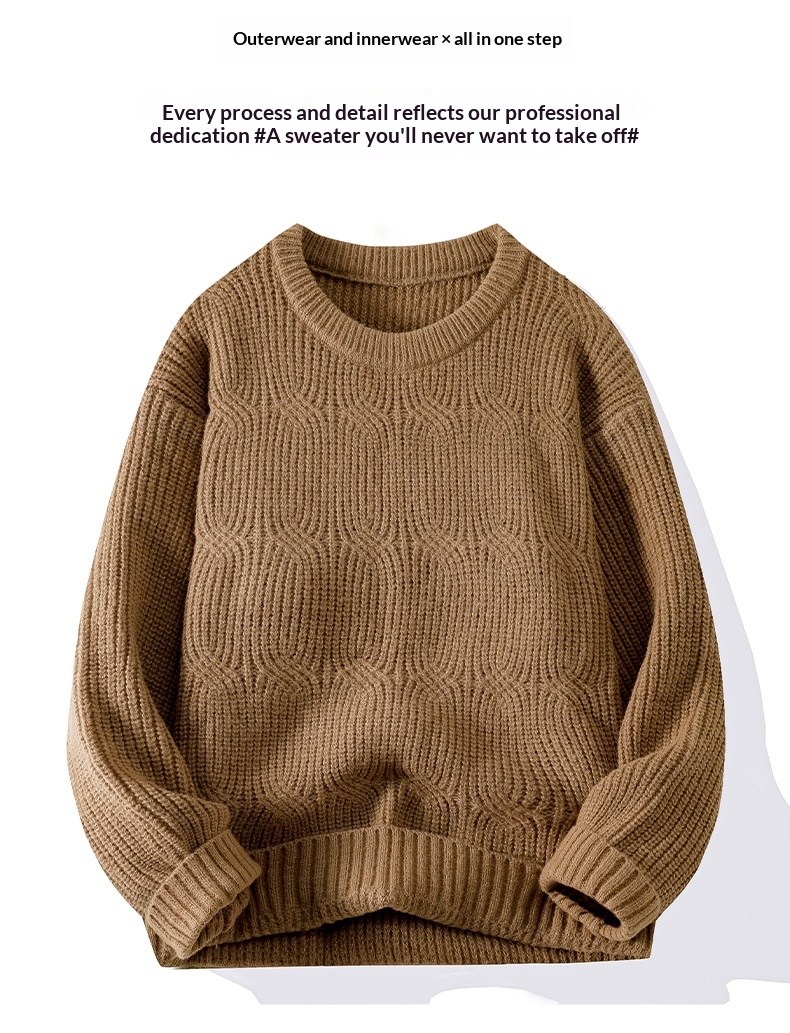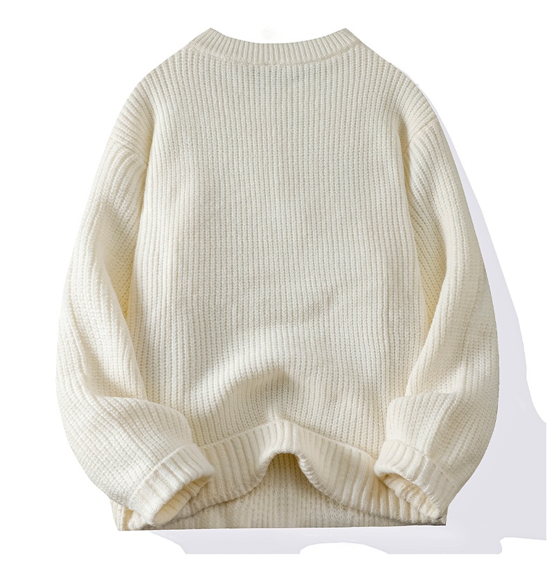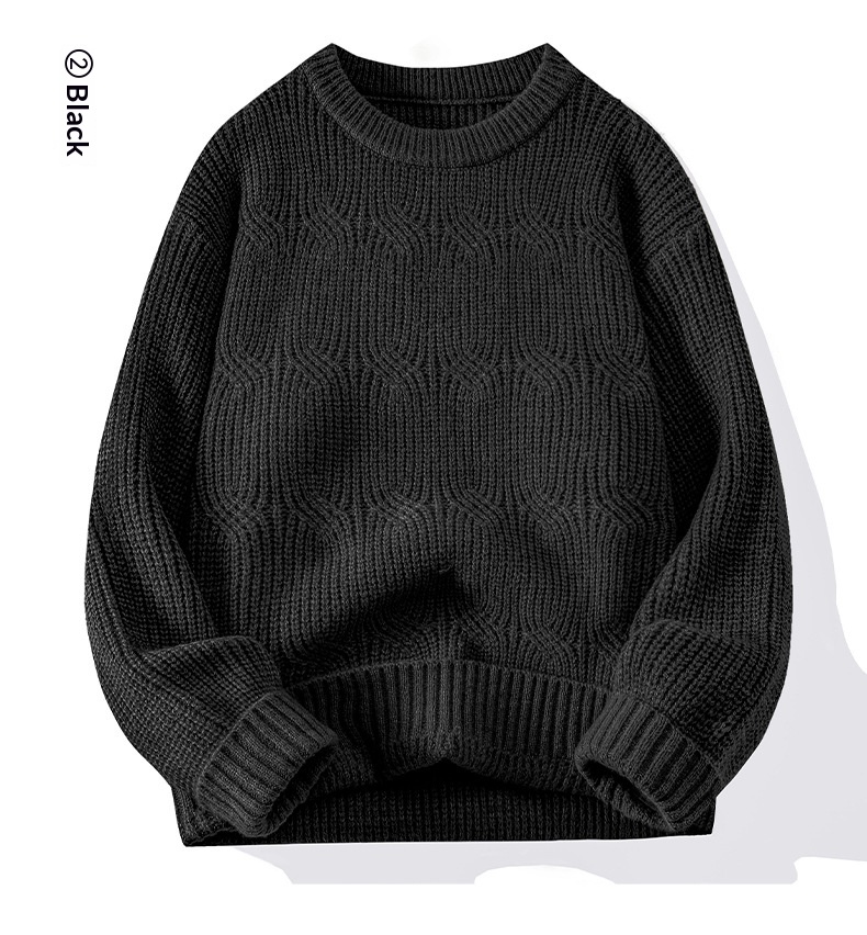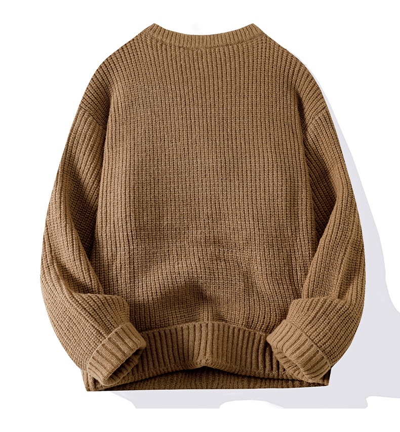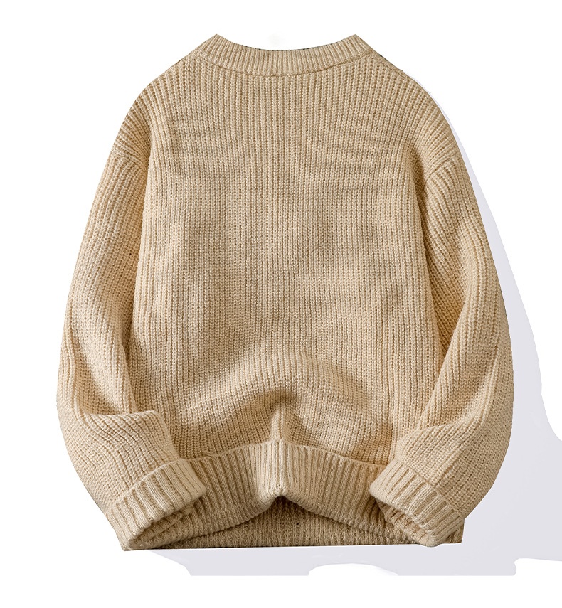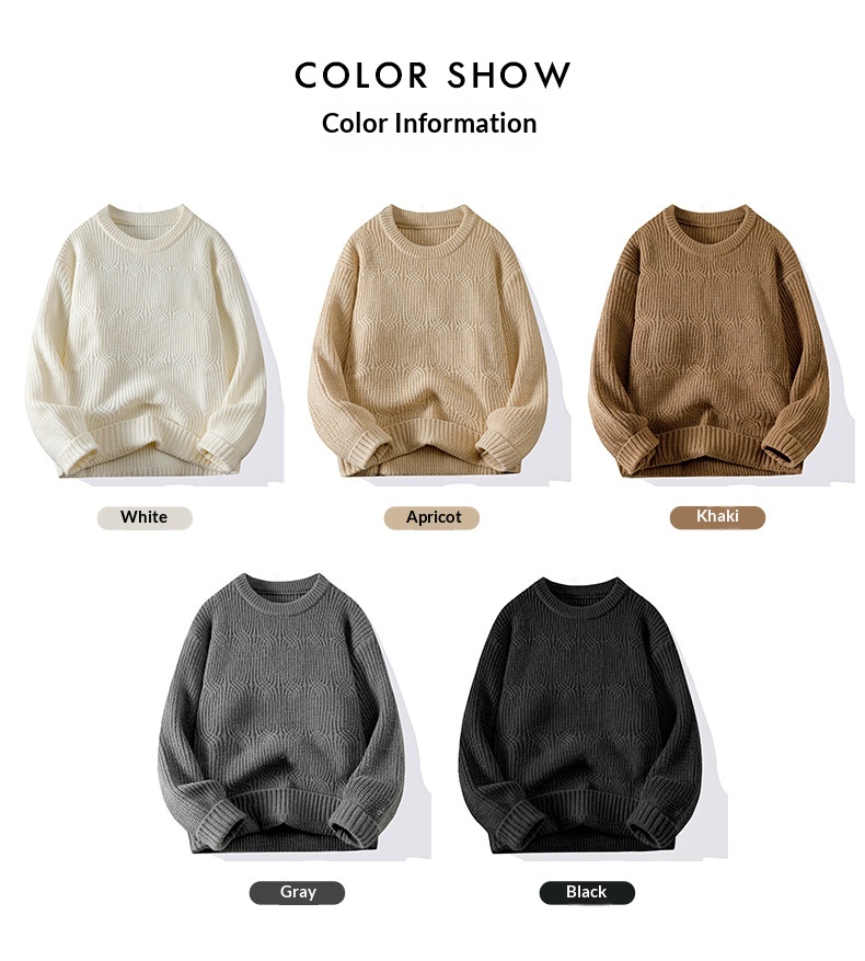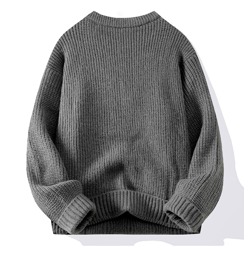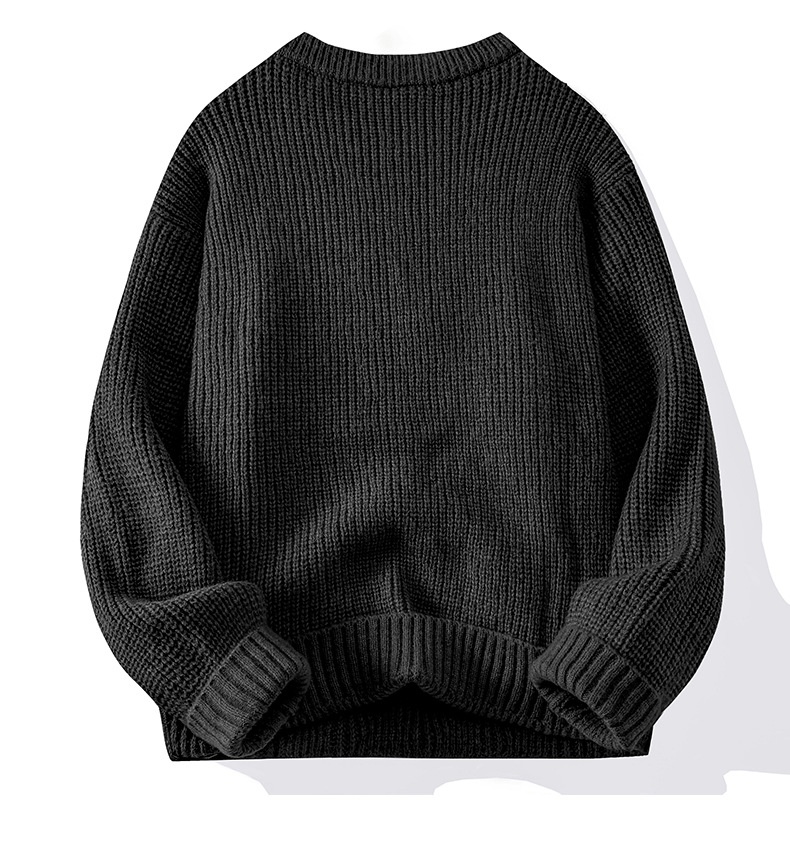 0 Review for Men's Solid-Colored Knitted Long-Sleeve Retro Crew-Neck Sweater