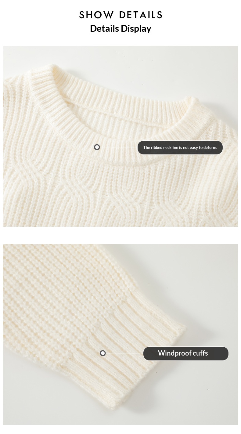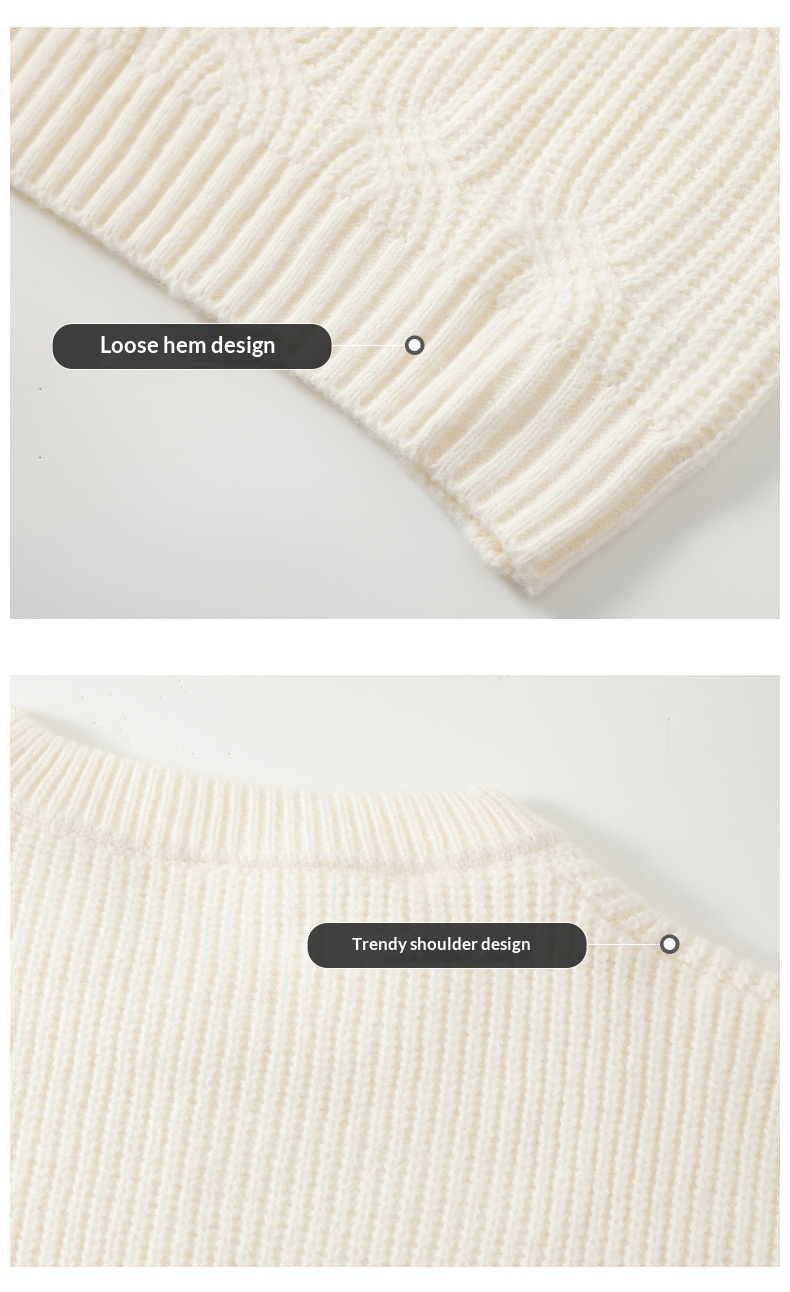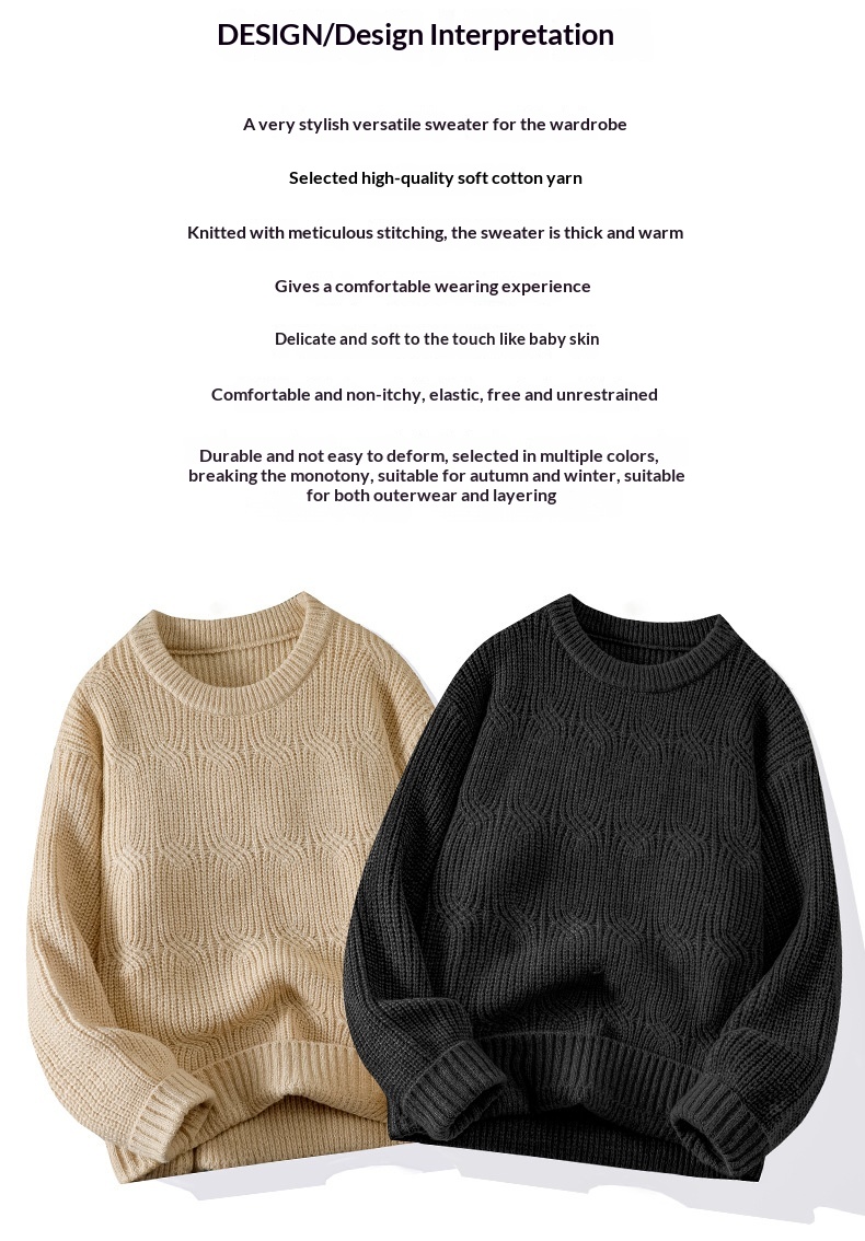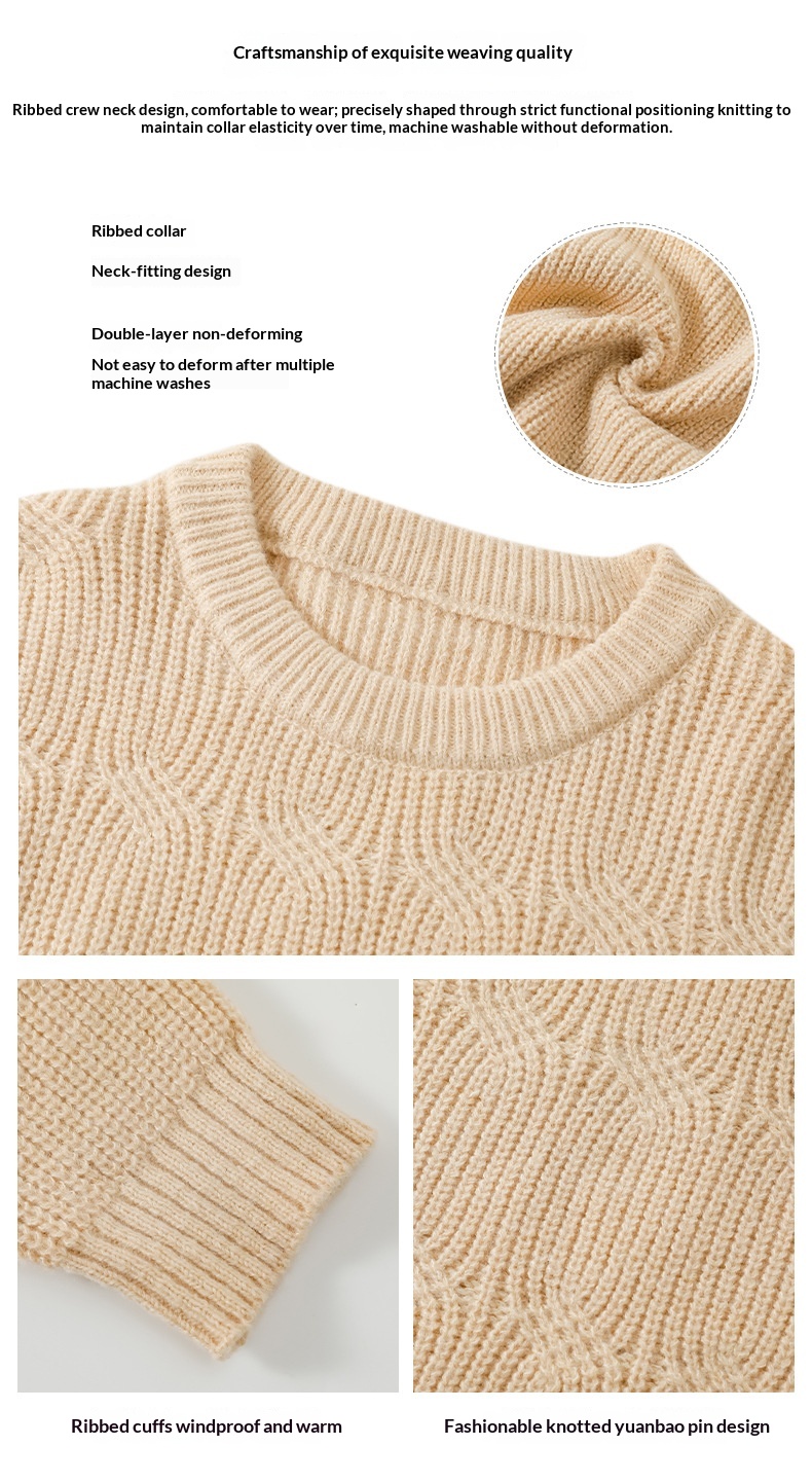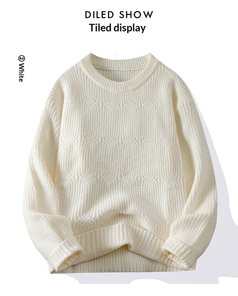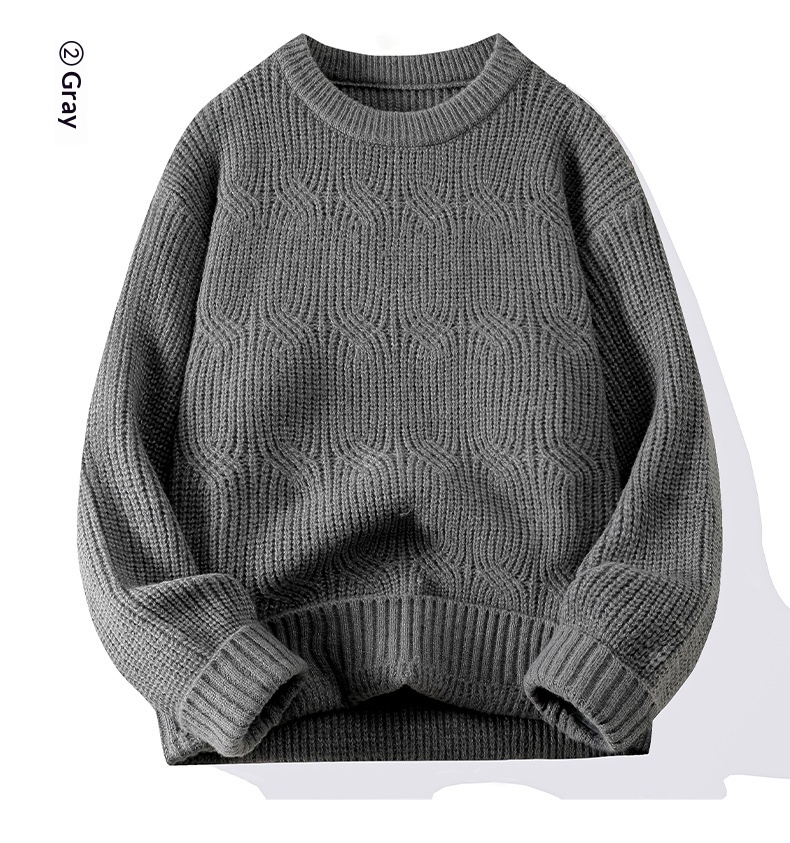 0 Review for Men's Solid-Colored Knitted Long-Sleeve Retro Crew-Neck Sweater