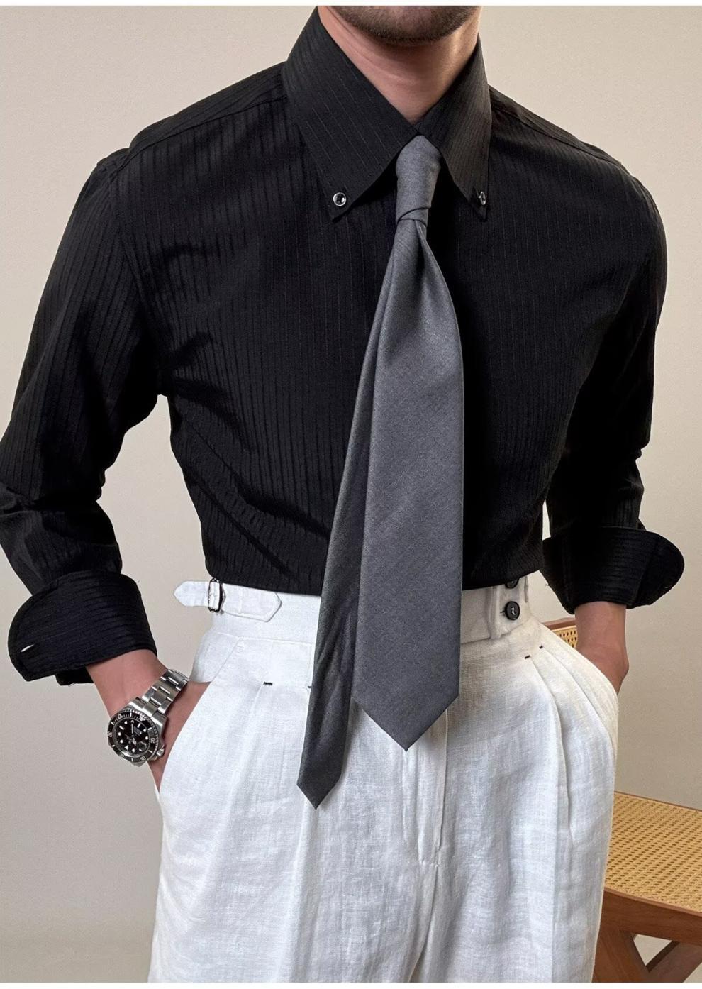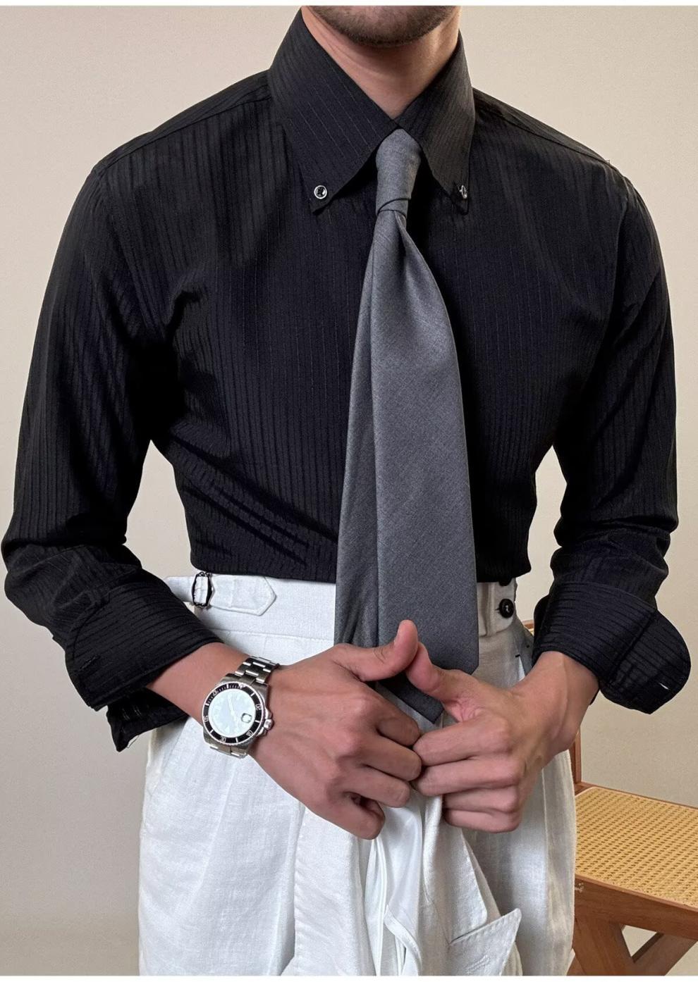 0 Review for Men's Striped Slim-Fit Casual Fashion Shirt
