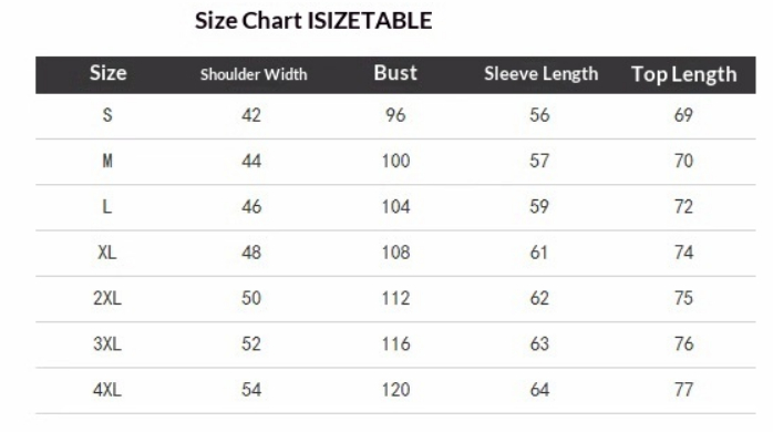 Sizes: S, M, L, XL, 2XL, 3XL, 4XL