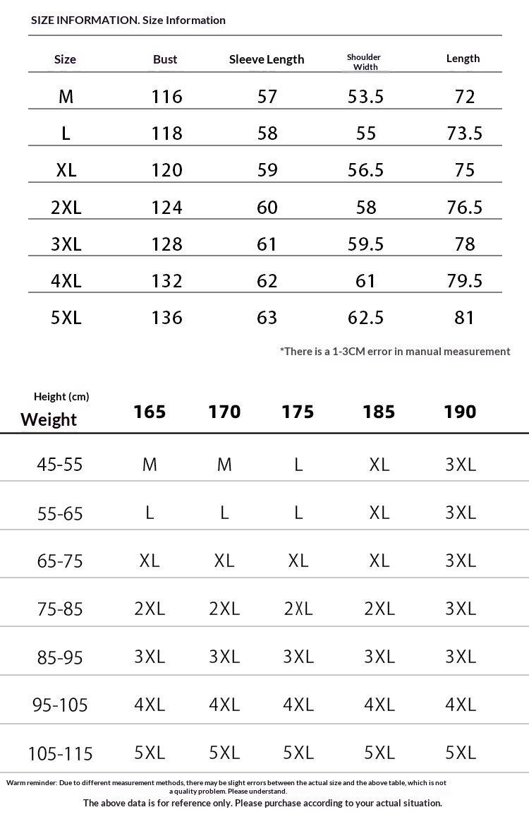 Sizes: M, L, XL, 2XL, 3XL, 4XL, 5XL