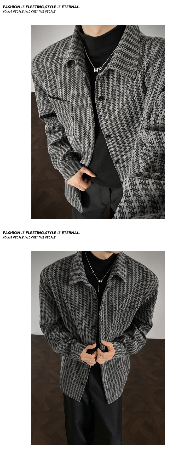 0 Review for Mens Bold Herringbone Chanel-Style Shirt Jacket