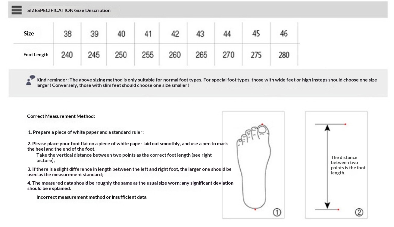 Sizes: 38, 39, 40, 41, 42, 43, 44, 45, 46